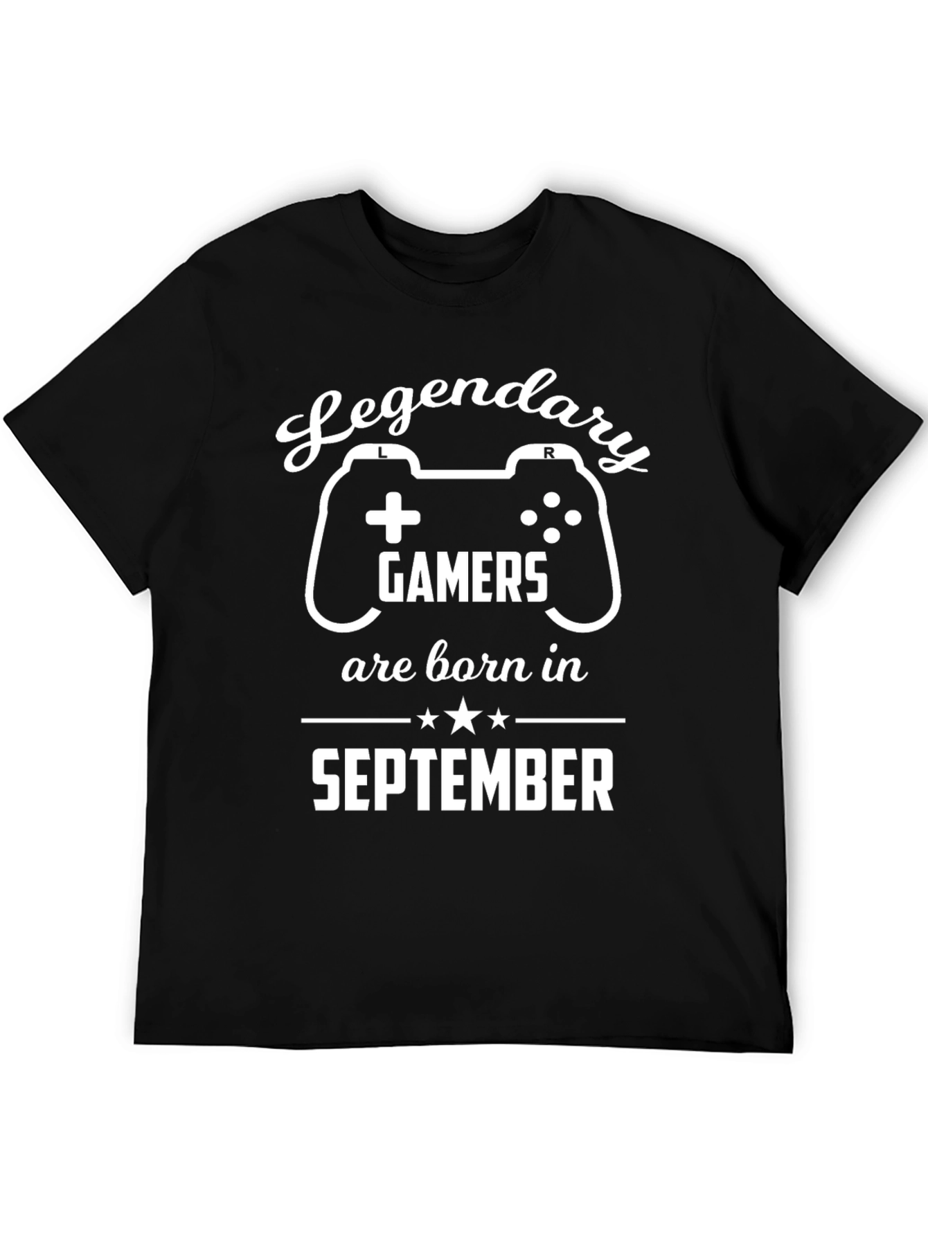 Show your gamer pride with this stylish black t-shirt. Featuring a classic video game controller graphic and the phrase "Legendary Gamers are born in SEPTEMBER," this shirt is perfect for any gamer celebrating a September birthday. The design is printed in white, offering a bold contrast against the black background. This tee combines comfort and style, making it ideal for everyday wear, gaming sessions, or casual outings. Whether you're a seasoned gamer or just love video games, this t-shirt lets you wear your passion with pride.