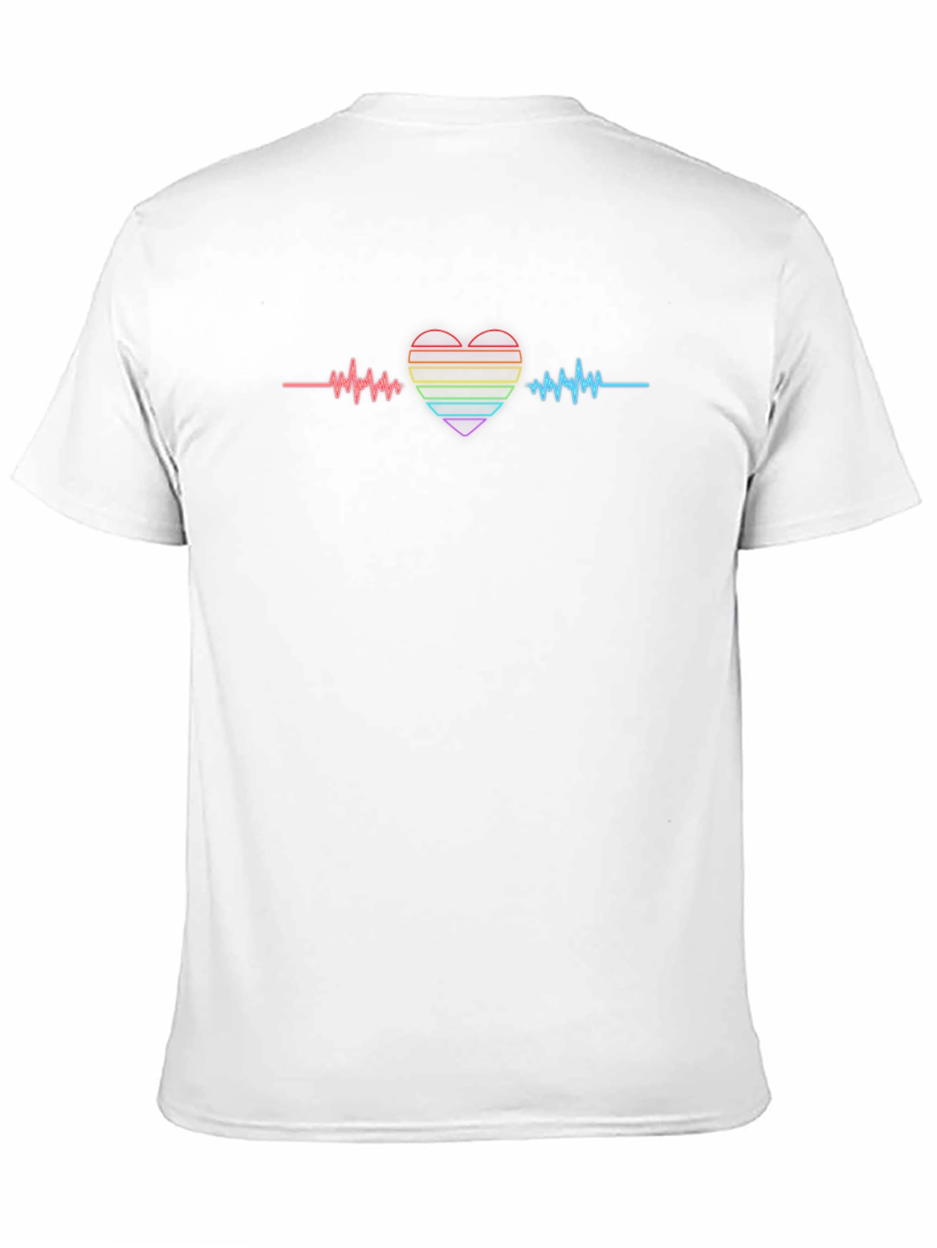 Show your pride with this stylish black t-shirt. It features a vibrant rainbow heart design integrated with a heartbeat waveform. The colorful graphic is eye-catching and represents love and acceptance. Made from a comfortable, breathable fabric, this tee is perfect for everyday wear, pride events, or casual outings. This expressive tee will become a go-to favorite in your wardrobe. Makes a thoughtful gift for friends, family, or anyone who wants to support the LGBTQ+ community. It's a simple yet powerful way to spread a positive message and celebrate diversity.