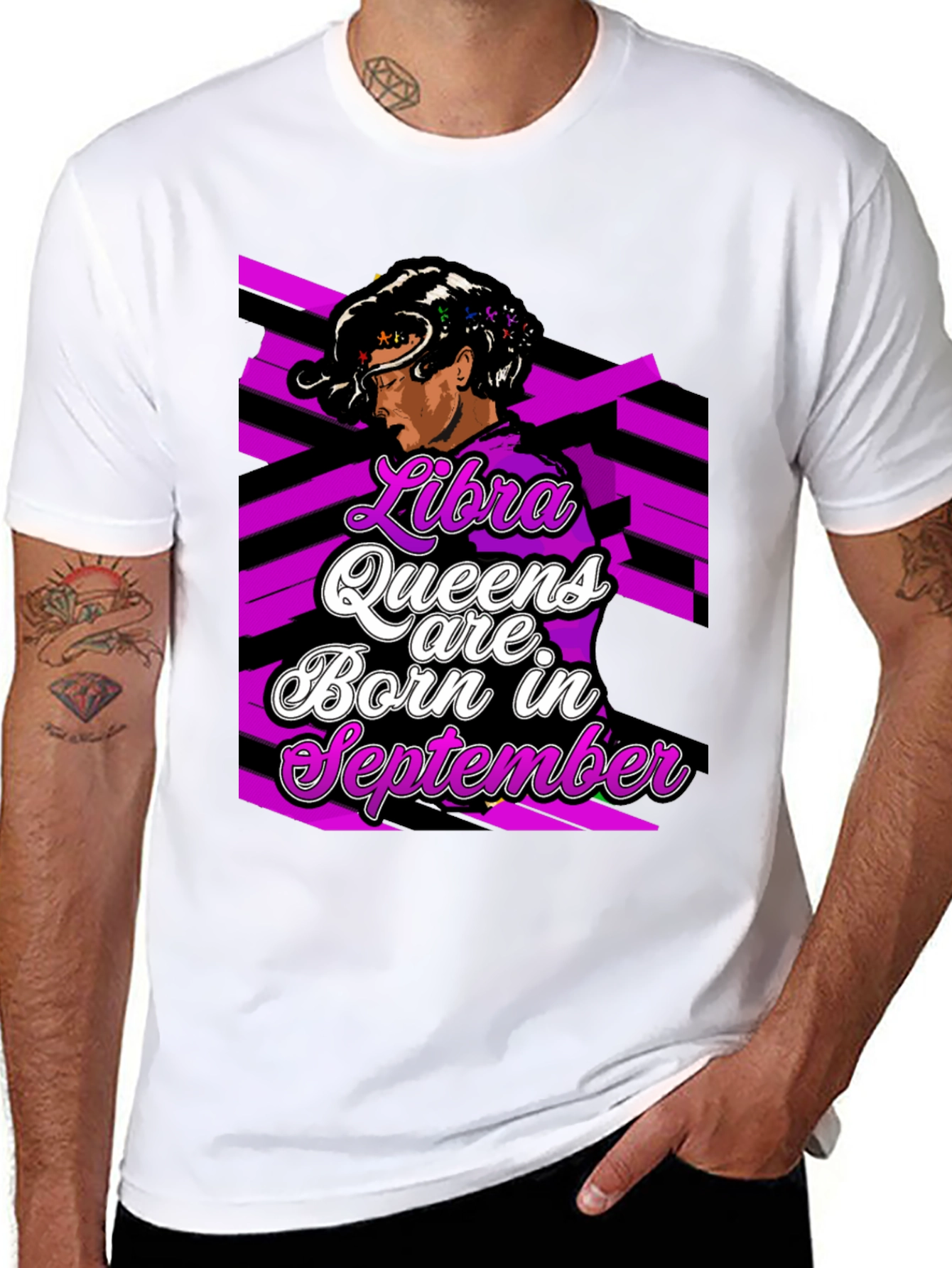 Show off your zodiac pride with this unique Libra Queen t-shirt! The black tee features a bold graphic design with "Libra Queens are Born in September" in a stylish script, complemented by an illustrated woman with a modern, artistic edge. The striking purple and black background adds a pop of color and contemporary flair. Made from comfortable, breathable fabric, this shirt is perfect for everyday wear. Whether you're celebrating your birthday month or simply expressing your astrological identity, this tee is a must-have for any Libra queen! This design is eye-catching and great for gifting. Available in multiple sizes.