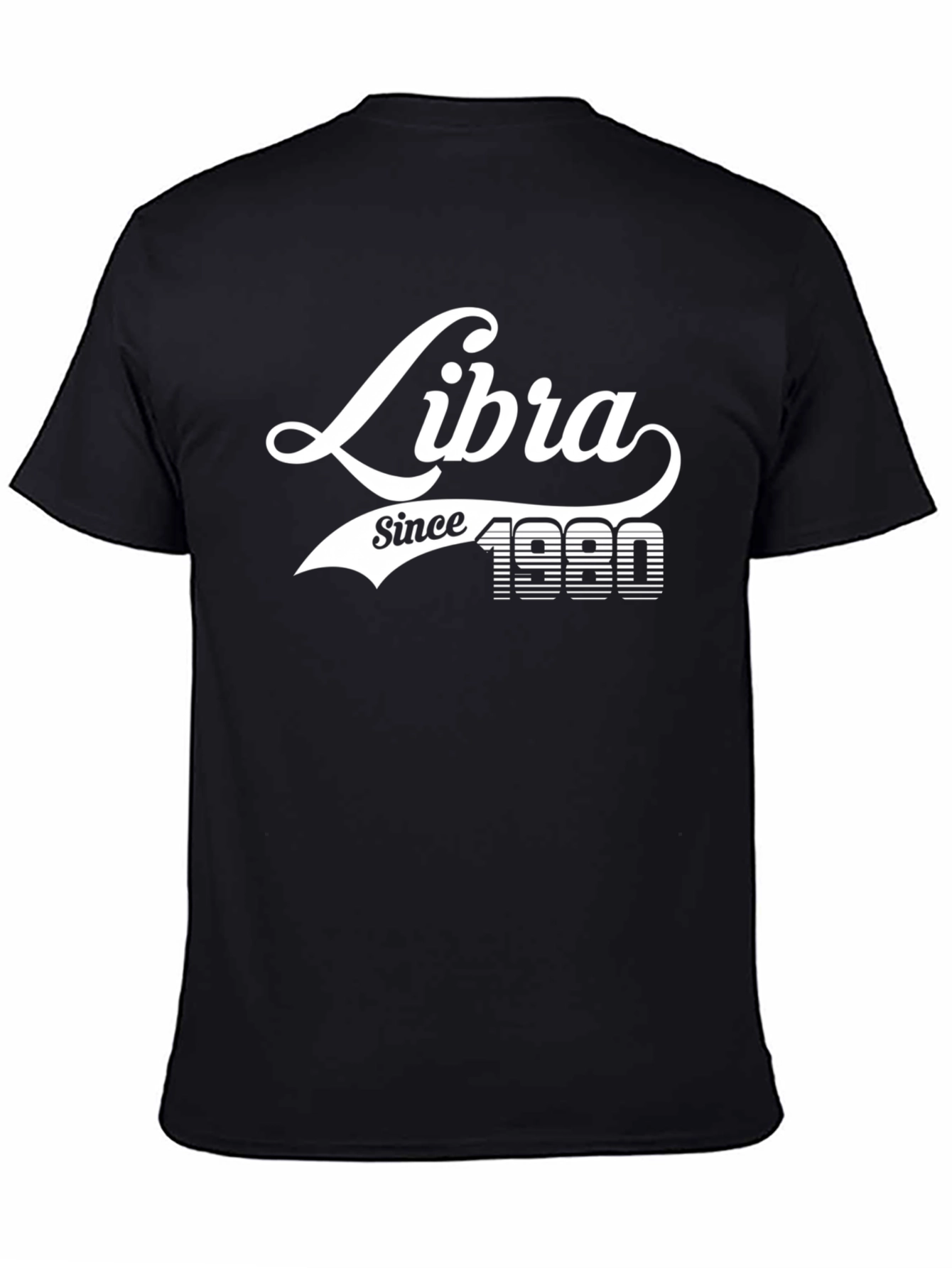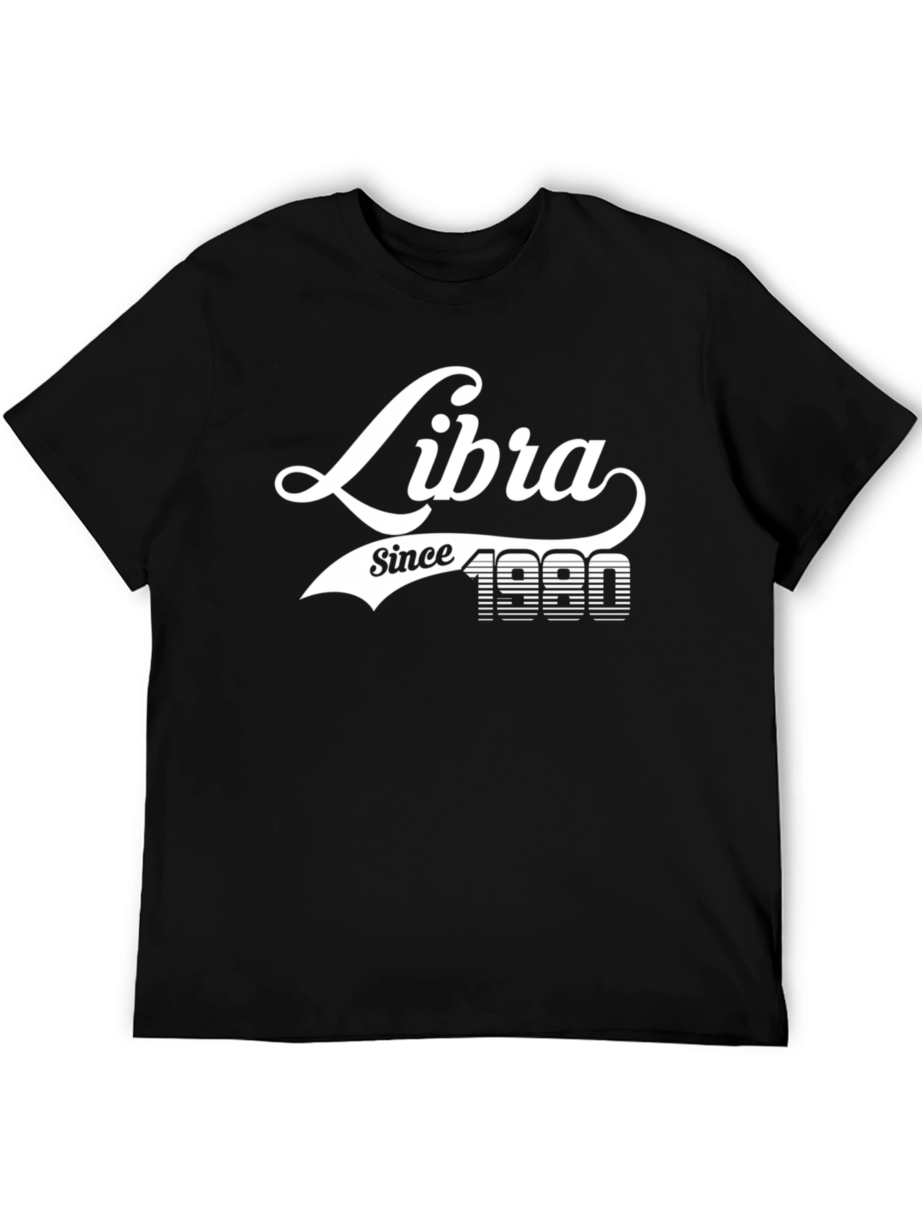 Show off your zodiac sign with this stylish Libra Since 1980 graphic t-shirt. The classic black tee features a bold, white graphic design that highlights the Libra constellation and the year 1980. Made from soft, breathable fabric, this shirt is comfortable for everyday wear. The simple yet eye-catching design makes it a versatile piece that can be dressed up or down. Perfect for astrology enthusiasts or anyone looking to add a personal touch to their wardrobe. Whether you're running errands or hanging out with friends, this t-shirt is sure to turn heads and spark conversations.