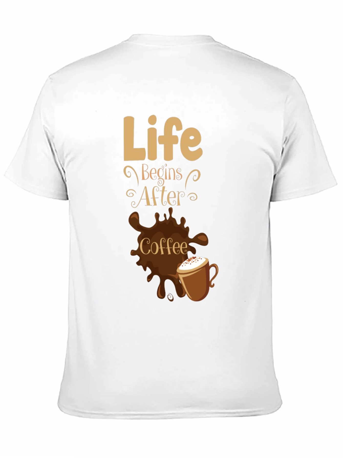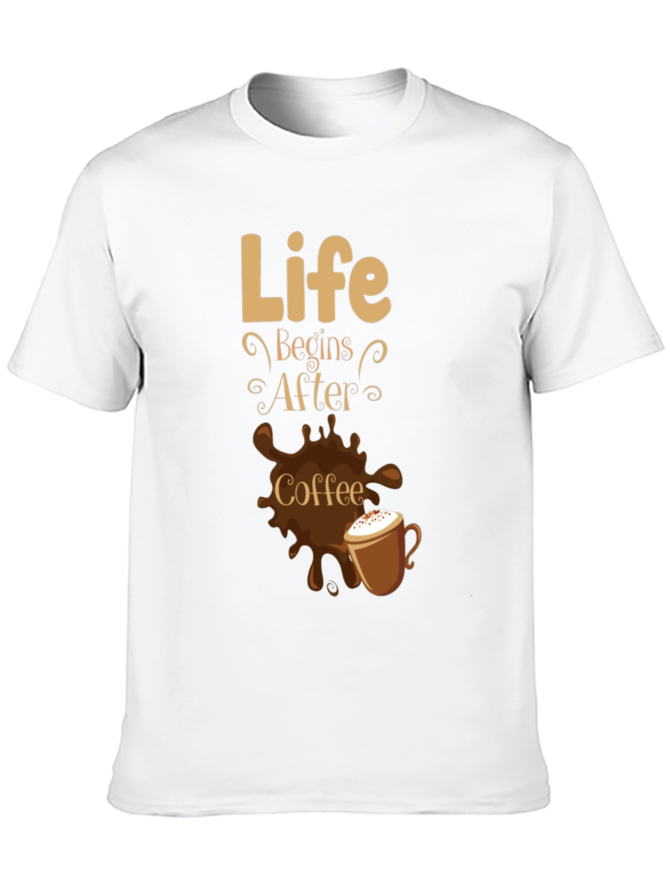 Start your day with a dose of style and caffeine-fueled motivation! This classic black t-shirt features a playful "Life Begins After Coffee" graphic, complete with a charming coffee cup illustration and a splash of coffee. Made from a soft, comfortable fabric, this tee is perfect for casual wear, coffee runs, or expressing your love for that morning brew. Its versatile design makes it an excellent addition to any coffee lover's wardrobe. Whether you're lounging at home or meeting friends, let this shirt be a reminder that the best is yet to come, after that first sip of coffee. Order yours today and wear your coffee devotion with pride!