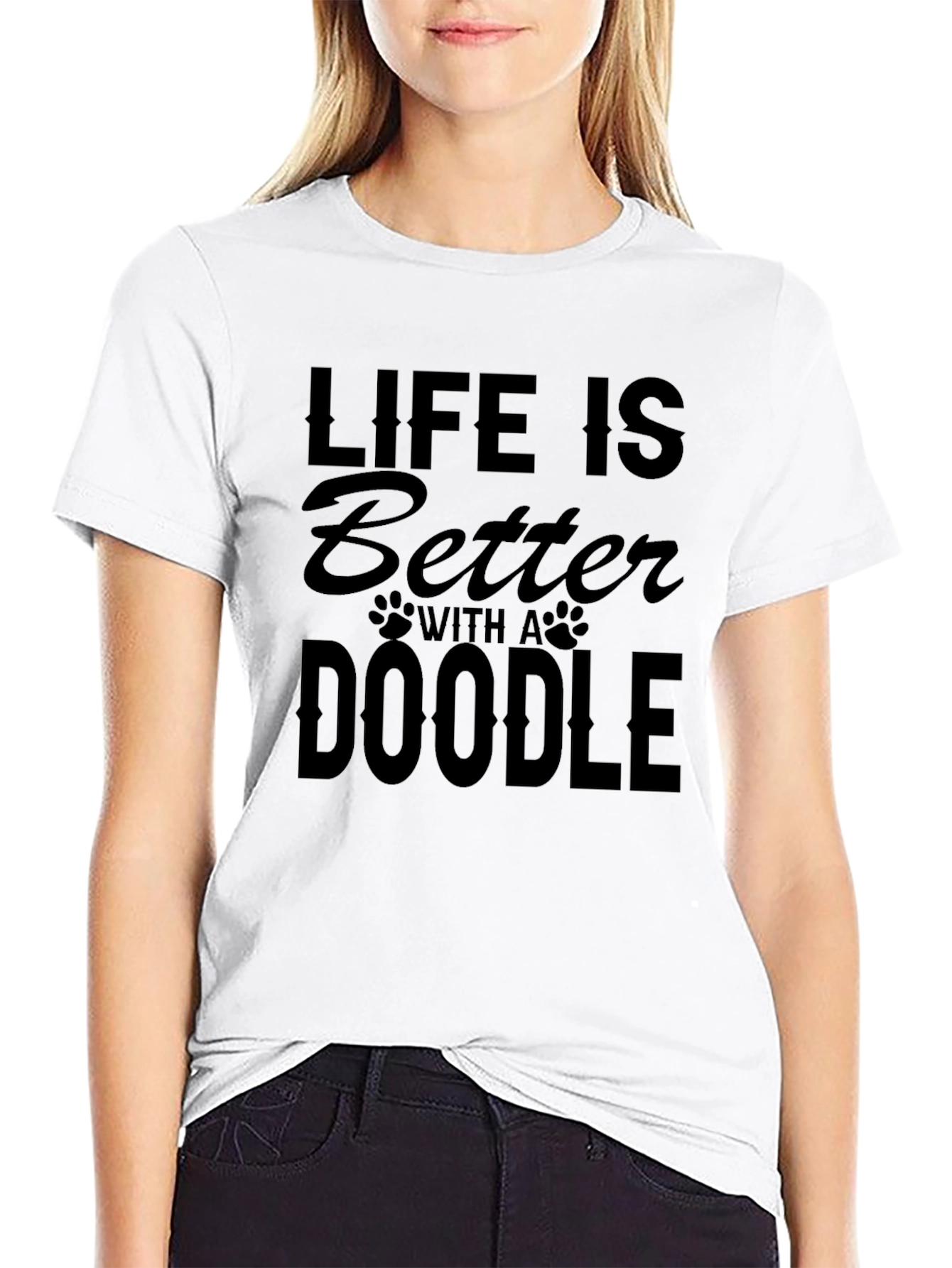 Show your love for your furry friend with this stylish black t-shirt. This tee features the fun slogan 'Life is Better with a Doodle' in bold, eye-catching lettering. Made from a soft, comfortable fabric, this shirt is perfect for everyday wear. The classic fit ensures a flattering silhouette for all body types. Whether you're walking your dog, running errands, or relaxing at home, this t-shirt is a great way to express your passion for Doodles. It also makes a thoughtful gift for any dog lover in your life. Get yours today and let everyone know that life is indeed better with a Doodle by your side!