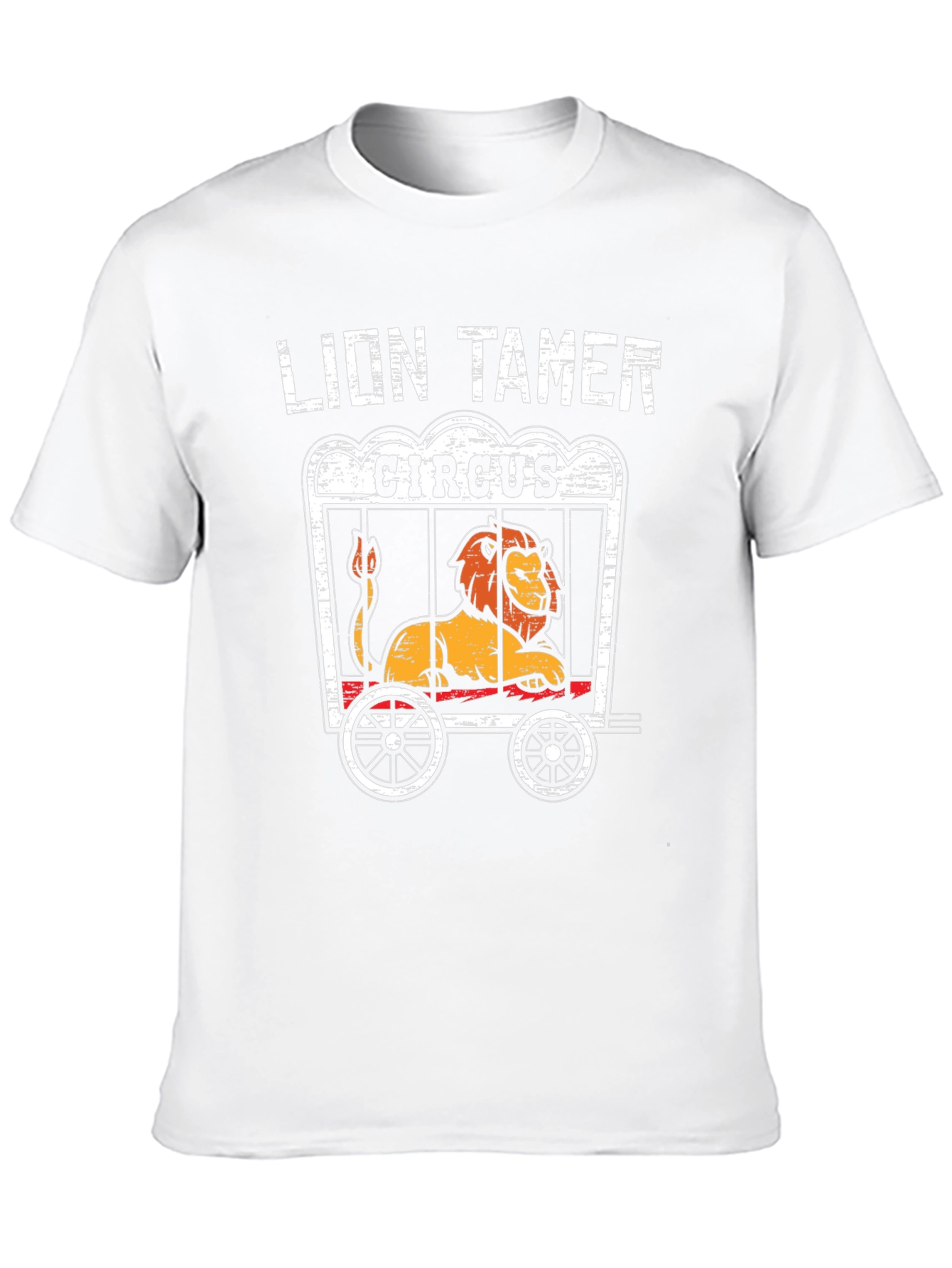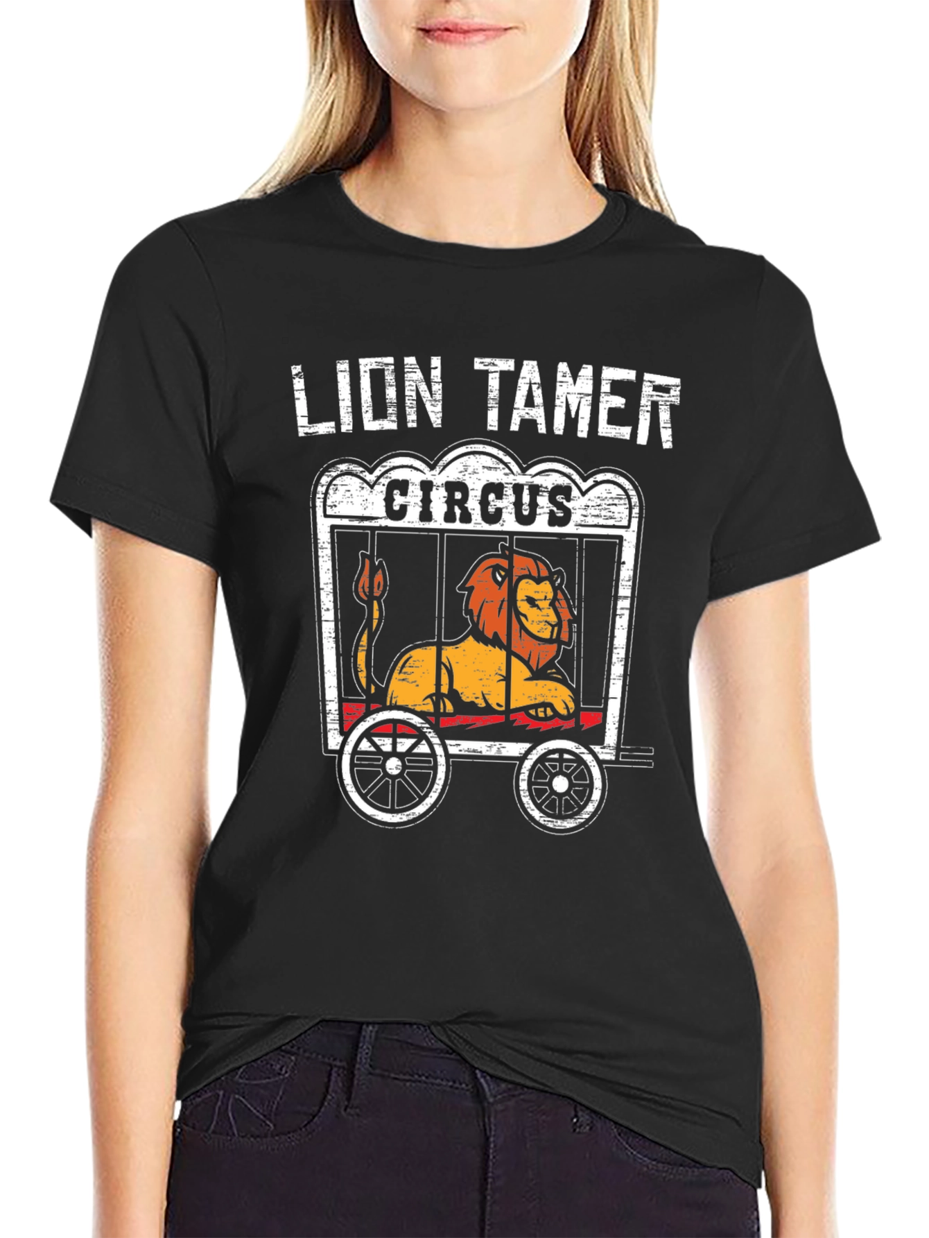 Step right up and show off your love for the circus with this eye-catching Lion Tamer graphic tee! The black t-shirt features a vintage-inspired design of a lion in a circus wagon, complete with the words "Lion Tamer Circus" printed in a distressed, bold font. Made from what appears to be a soft and comfortable cotton blend, this tee is perfect for casual wear. Whether you're a fan of big cats, a circus enthusiast, or simply looking for a unique graphic tee, this shirt is sure to turn heads and spark conversations. Pair it with jeans or shorts for a relaxed and stylish look that showcases your personality. A great gift for any animal lover or circus performer!