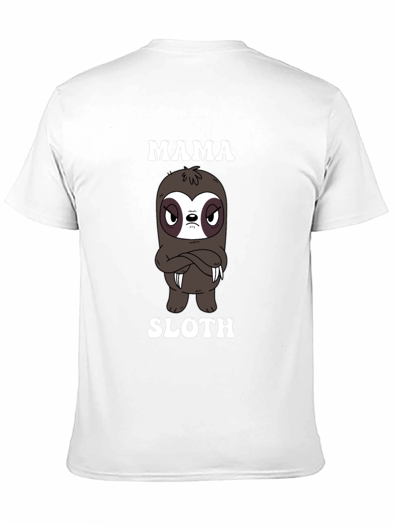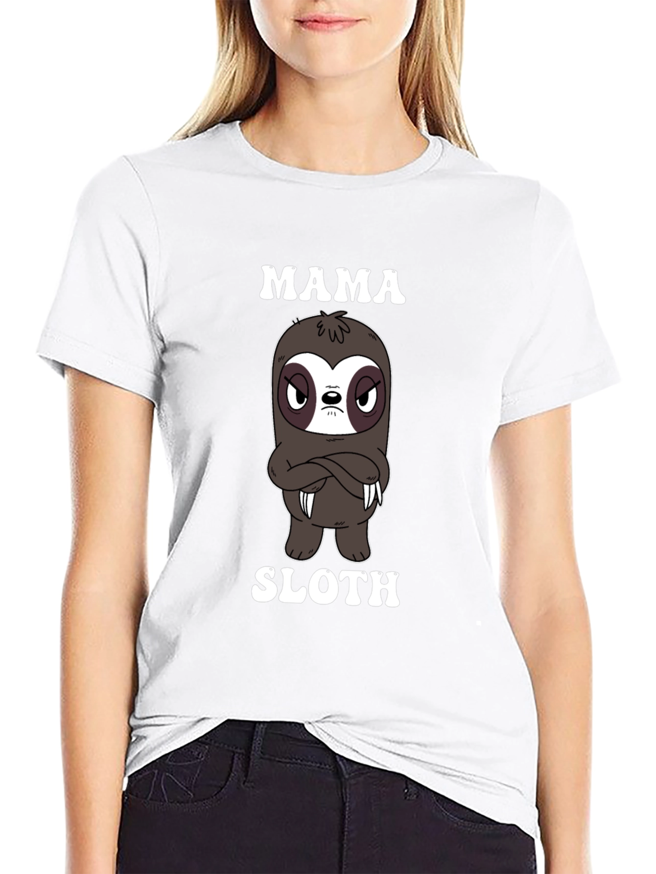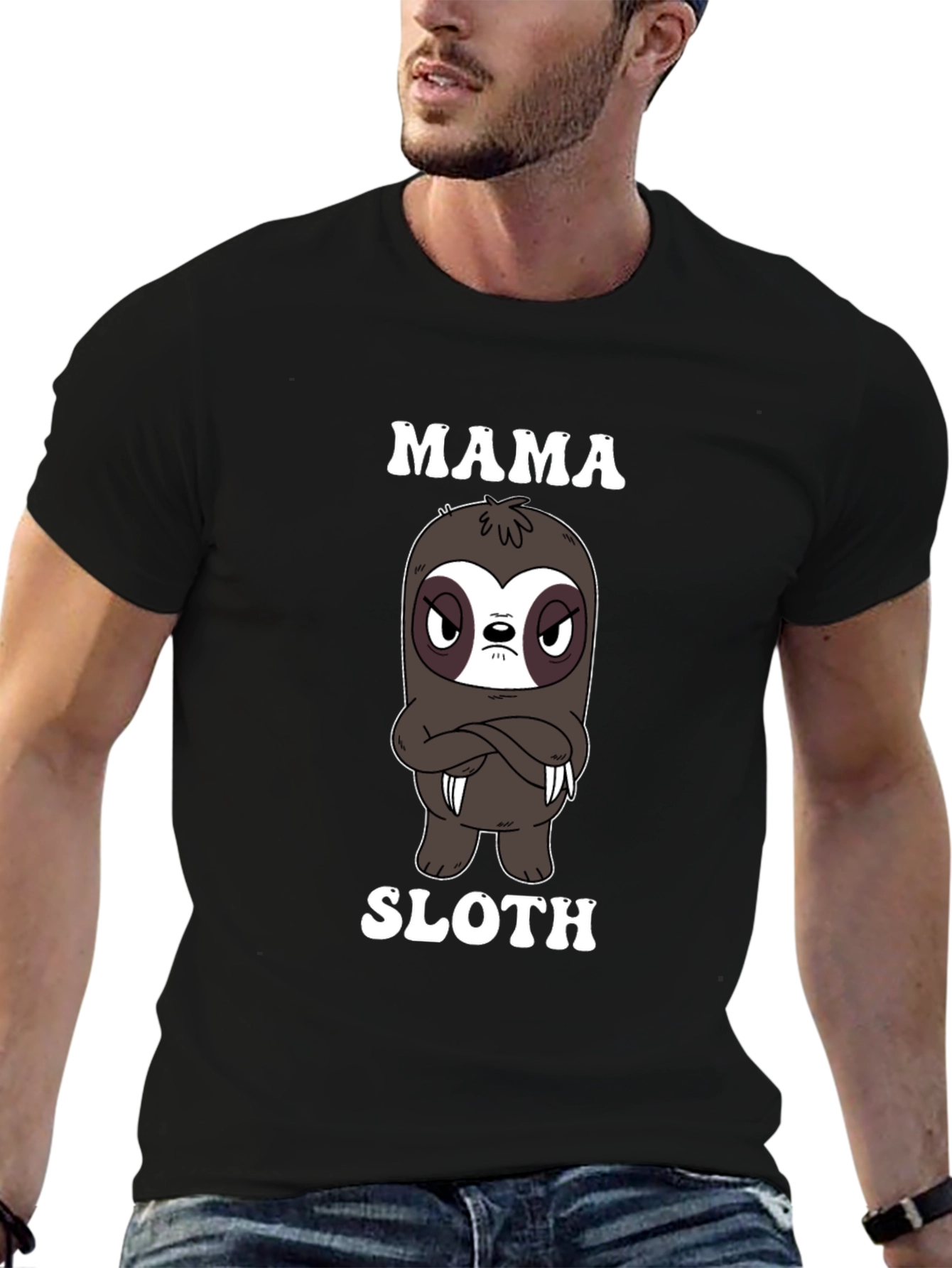 Show off your love for sloths with this adorable "Mama Sloth" graphic t-shirt. The design features a cute cartoon sloth with crossed arms and a sassy expression, printed in white lettering on a black t-shirt. Perfect for casual wear, this tee is made from soft, breathable cotton, ensuring all-day comfort. Ideal for sloth-loving moms or anyone who enjoys fun and quirky designs. Wear it to the park, a casual hangout, or simply relax at home in style. A must-have addition to any fun-loving wardrobe.