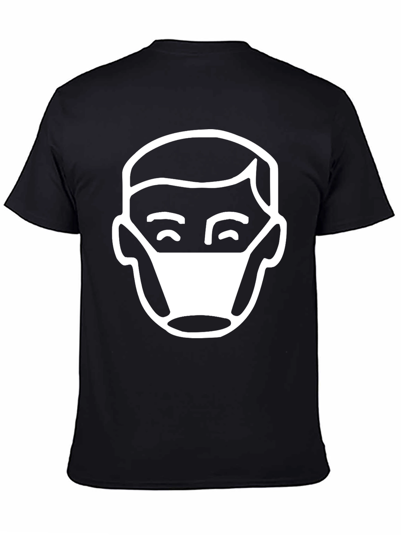 Stay stylish and safe with this black graphic tee featuring a bold, minimalist design of a face wearing a mask. Made from comfortable materials, this t-shirt offers a classic fit that's perfect for everyday wear. The striking white graphic contrasts sharply against the black backdrop, making it a versatile piece for various casual outfits. Ideal for expressing awareness and a touch of modern style, this tee is a must-have addition to any wardrobe. Wear it on its own or layer it under a jacket for a cool, contemporary look.