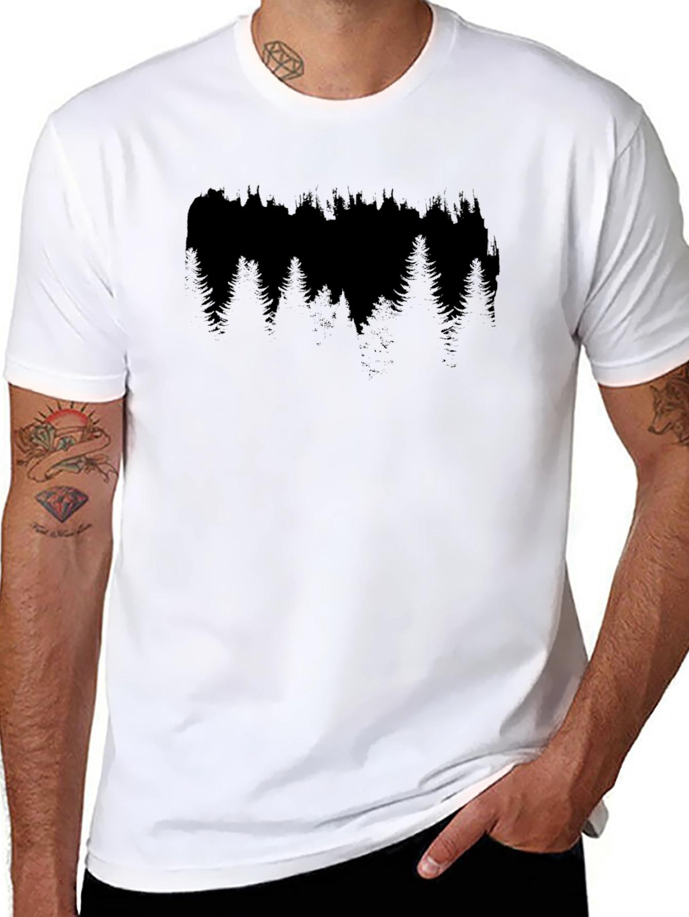 Embrace nature with this stylish men's black t-shirt featuring a subtle yet captivating forest tree graphic. This tee is perfect for adding a touch of the outdoors to your everyday wardrobe. The shirt has a classic fit and made from soft and breathable fabric, ensuring all-day comfort. The forest tree graphic design gives it a unique and understated look, making it versatile enough to pair with jeans, chinos, or shorts. Whether you're heading out for a casual weekend adventure or simply relaxing at home, this t-shirt is the perfect choice.