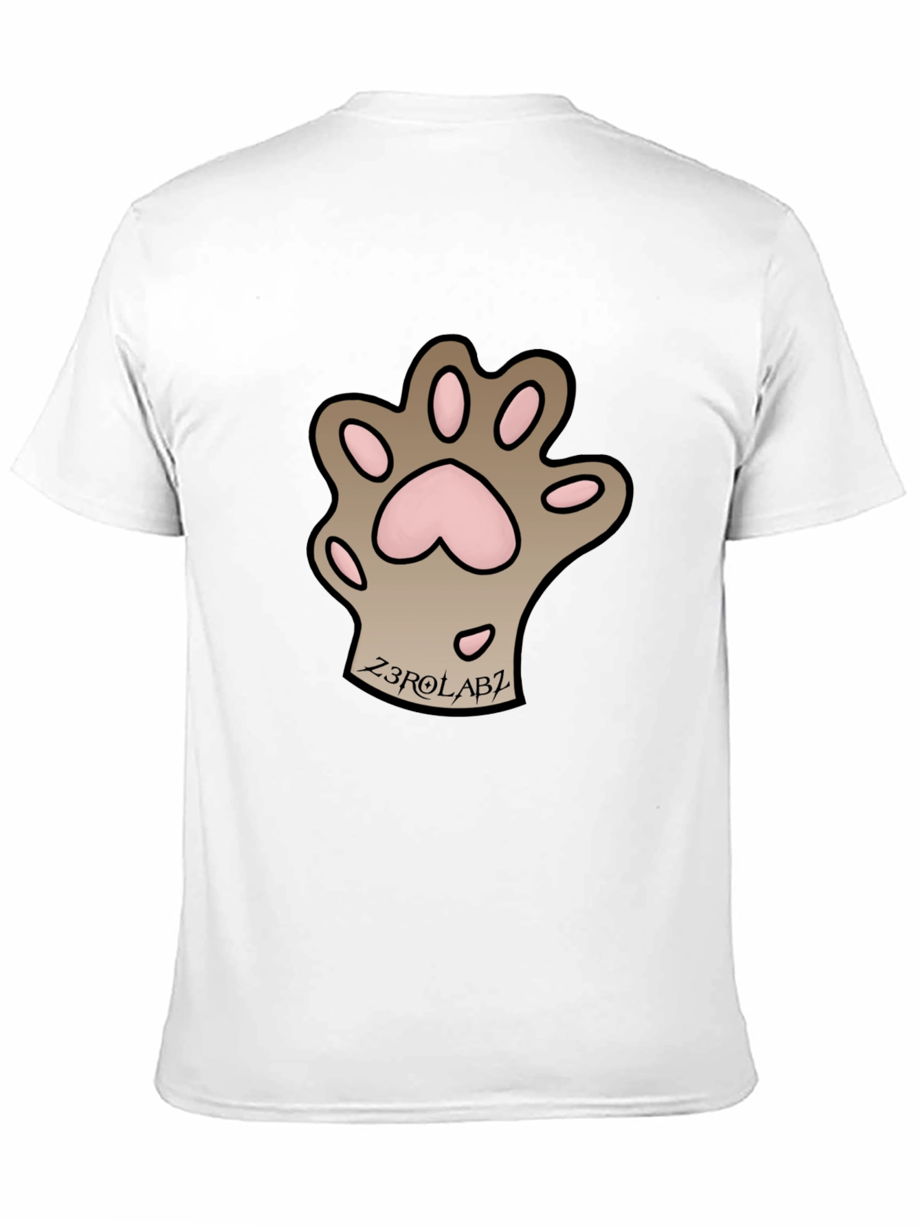 Show off your love for cats with this stylish men's black t-shirt! Featuring a playful cat paw print design with pink toe beans and the text "Z3R0LABZ", this tee is perfect for casual wear. The shirt appears to be made from a comfortable, soft fabric, ensuring a great fit and feel. Ideal for everyday wear, lounging, or a fun gift for cat lovers. Pair it with jeans or shorts for a relaxed and trendy look.