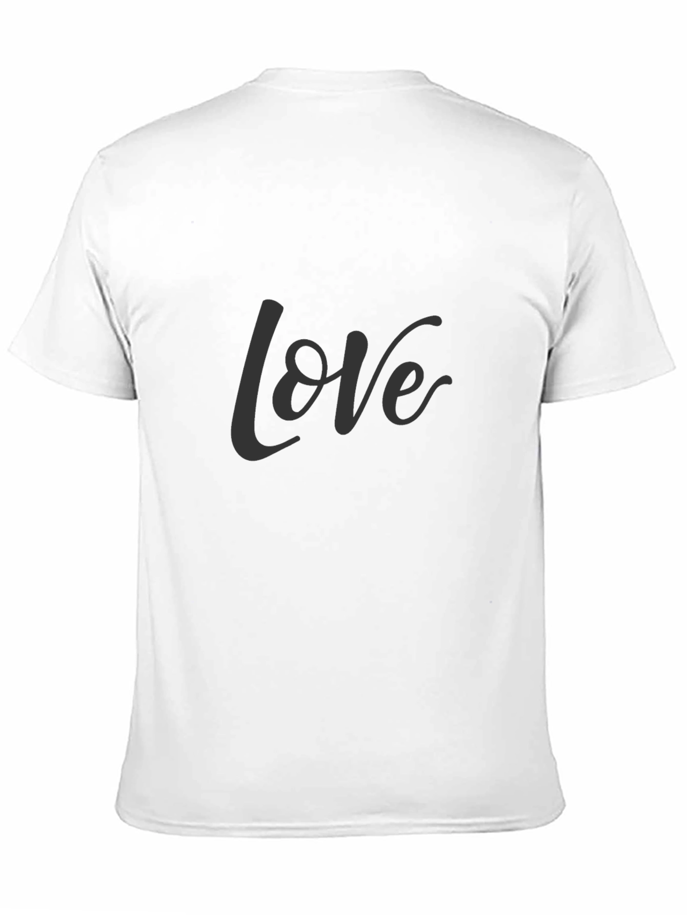 Show your appreciation for love with this stylish men's black graphic t-shirt. The shirt features a subtle "Love" design, making it a versatile addition to your wardrobe. Crafted from soft, breathable fabric, this tee offers a comfortable fit for all-day wear. The classic short-sleeve design makes it ideal for casual occasions, lounging at home, or layering under a jacket. Its minimalist aesthetic ensures it pairs effortlessly with jeans, shorts, or chinos. Express yourself with this understated, yet meaningful tee. Perfect for everyday wear, or as a thoughtful gift for someone special.