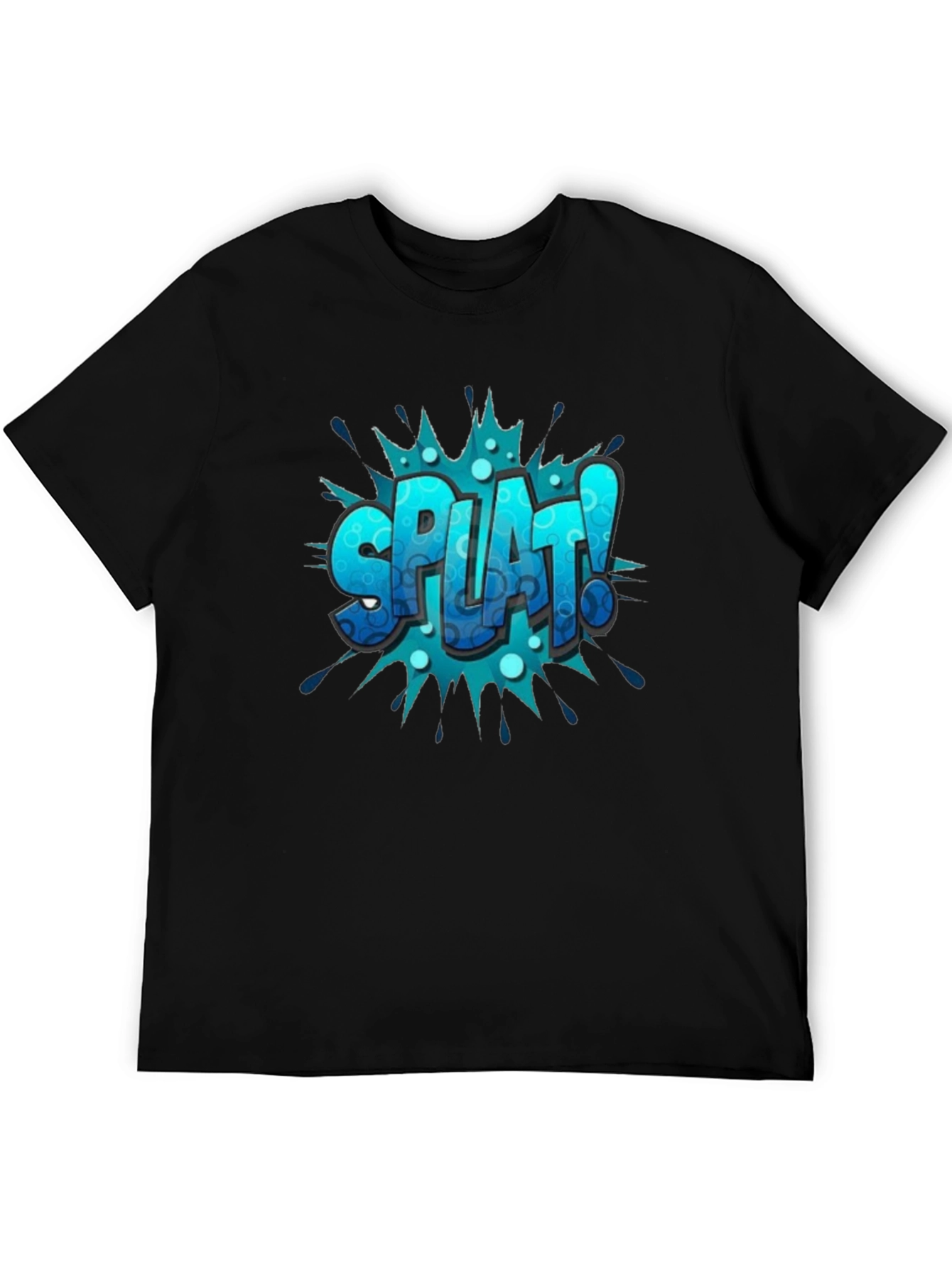 Make a statement with this eye-catching men's black t-shirt. Featuring a bold "Splat!" graphic in vibrant blue hues, this tee is perfect for adding a pop of color to your casual wardrobe. The design is playful and attention-grabbing, making it a great conversation starter. Crafted from a comfortable fabric, this shirt is ideal for everyday wear. Pair it with jeans or shorts for a relaxed, stylish look. Show off your unique sense of style with this must-have graphic tee. It would be a great choice for anyone who enjoys expressing themselves with their clothing.