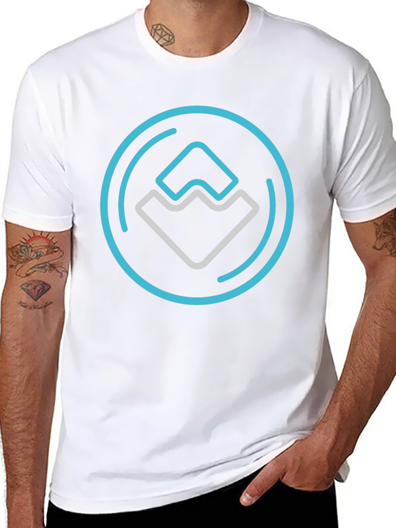 This black t-shirt features a unique circular graphic design. The design consists of a light blue circle with white geometric shapes in the center, offering a modern and eye-catching aesthetic. Made from what appears to be comfortable cotton, this tee is perfect for casual wear. Pair it with jeans, shorts, or joggers for a relaxed yet stylish look. The design stands out without being overpowering, making it a great addition to any wardrobe. Whether you're hanging out with friends or running errands, this t-shirt will keep you comfortable and on-trend.