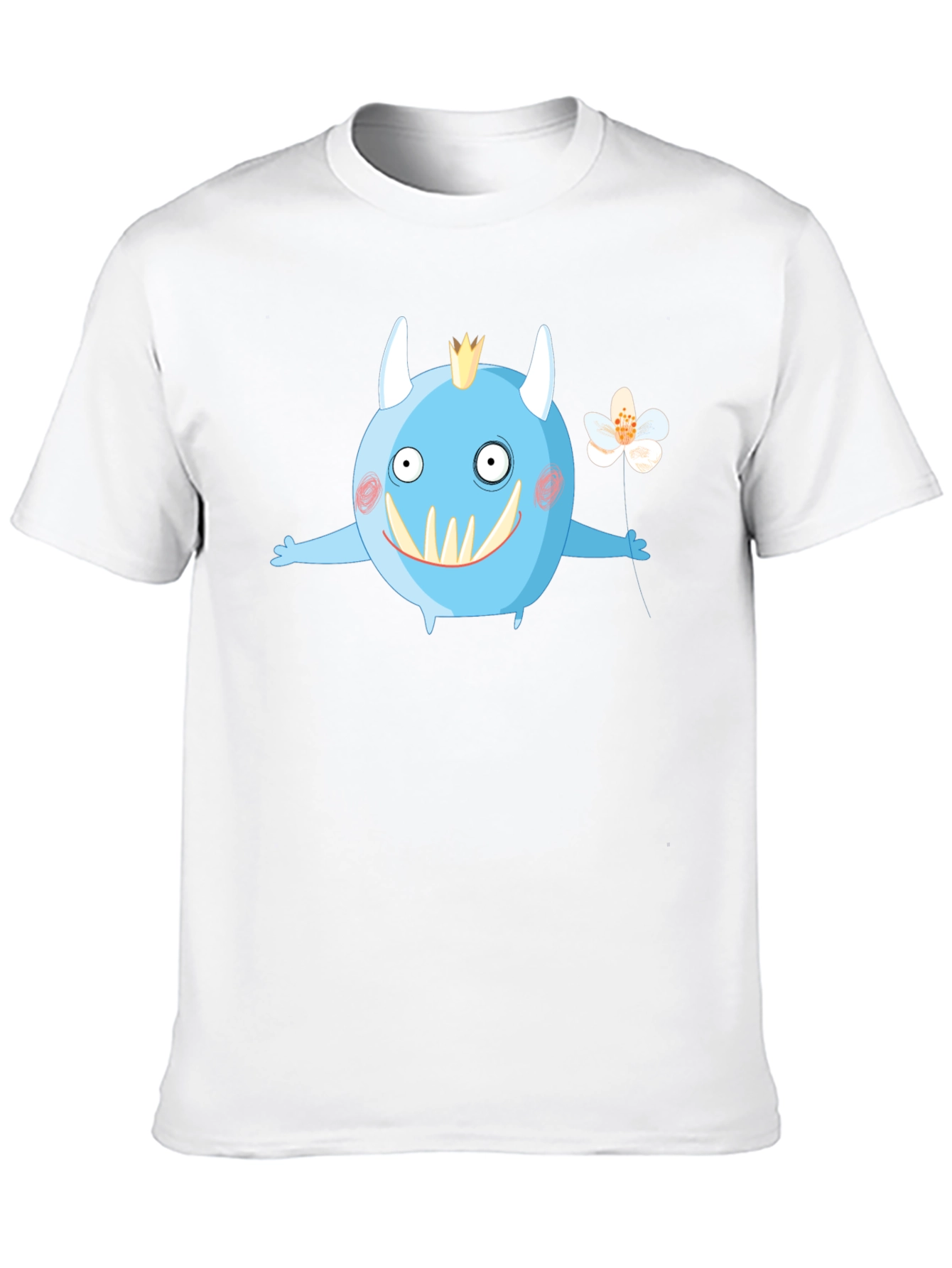 Show off your fun side with this eye-catching graphic tee! The black t-shirt features a playful cartoon-style blue monster holding a delicate white flower. The monster design is unique and sure to spark conversation, adding a touch of whimsy to your everyday style. The tee is comfortable and versatile, perfect for casual outings, lounging, or making a statement wherever you go. Wear it with jeans, shorts, or layer it under a jacket for a relaxed and stylish look. This tee is a fantastic addition to any wardrobe, whether you're a fan of quirky characters or simply looking for a comfortable and fun t-shirt option.