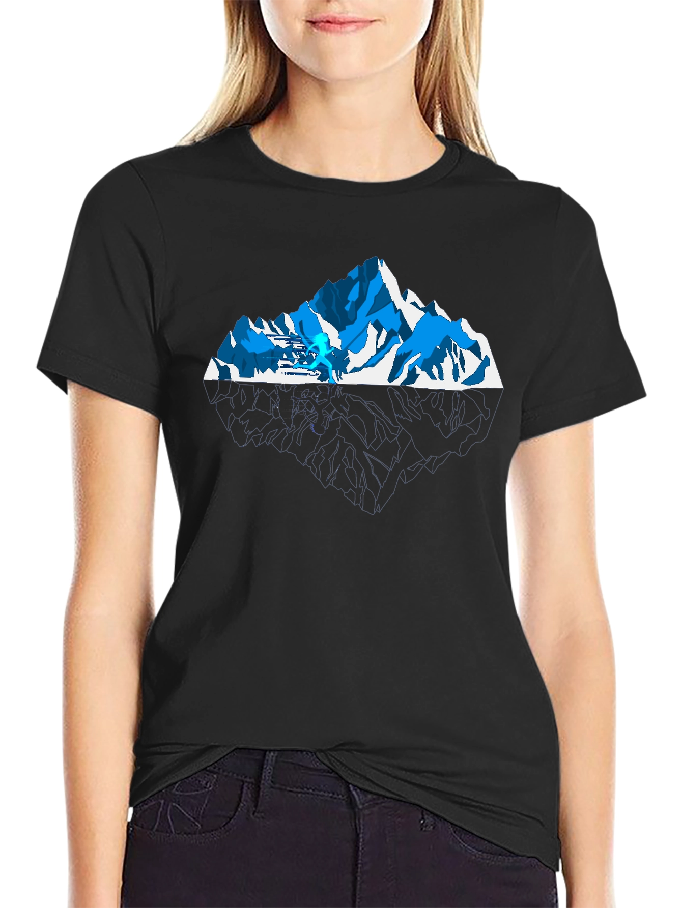 Embrace your adventurous side with this stylish black t-shirt. Featuring a striking graphic of a mountain range with a lone runner, this shirt is perfect for outdoor enthusiasts. The design utilizes cool blue tones against the dark background, creating a bold and eye-catching look. Made from a comfortable, breathable fabric, this t-shirt is ideal for casual wear, workouts, or hiking trips. Show off your love for nature and running with this unique and versatile tee. Great for everyday wear or a gift for the trail runner in your life!