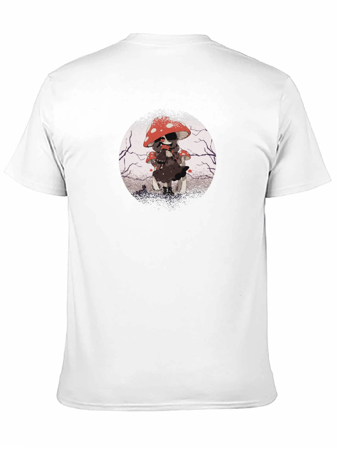 Embrace your love for anime and unique fashion with this striking graphic tee. The shirt features a captivating design of an anime-style girl adorned with a large mushroom, set against a dark, mystical backdrop. The print is showcased in a circular frame, enhancing the overall aesthetic. Crafted from a soft, breathable fabric, this t-shirt offers both comfort and style. Its dark color is versatile and easy to pair with any outfit. Perfect for casual wear, cosplay events, or as a gift for anime enthusiasts. Show off your individual style with this eye-catching graphic tee.