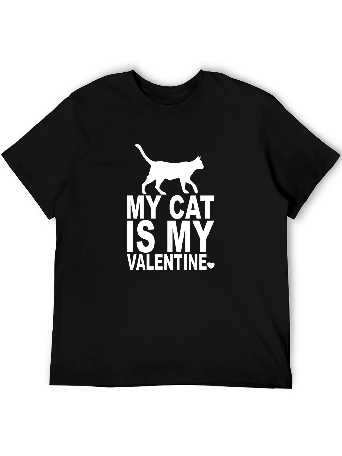 Declare your love for your feline friend with this adorable 'My Cat Is My Valentine' t-shirt. Made from a soft, comfortable black fabric, this tee features a cute white cat silhouette and playful text. This shirt is perfect for casual wear, lounging at home with your kitty, or celebrating Valentine's Day in style. The eye-catching design is sure to spark conversations and show off your unique personality. Get ready to turn heads and spread the cat love with this fun and fashionable t-shirt!