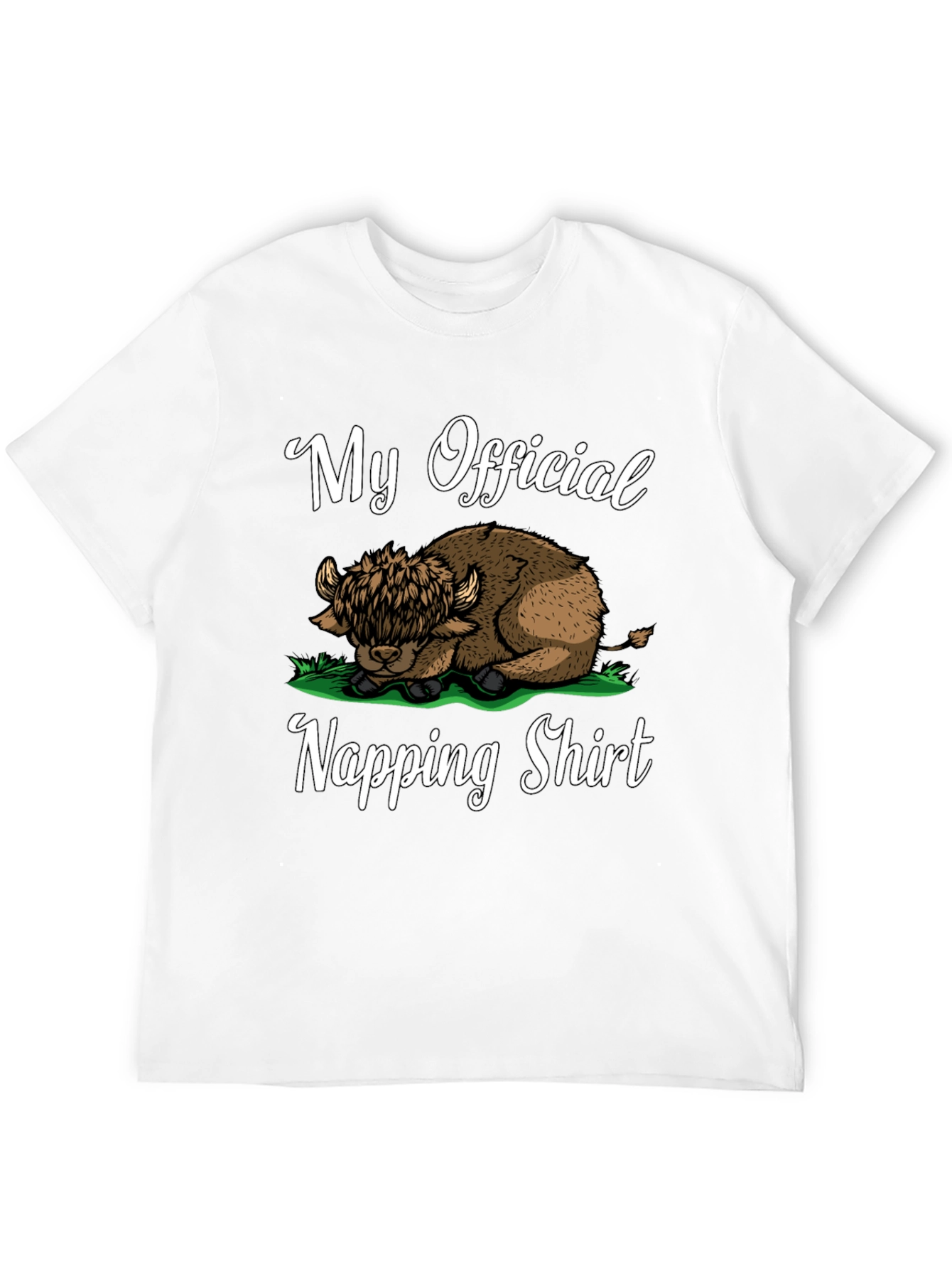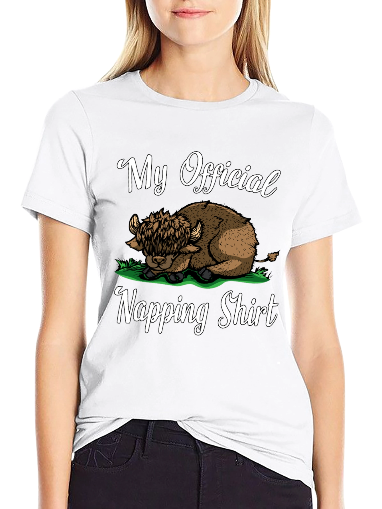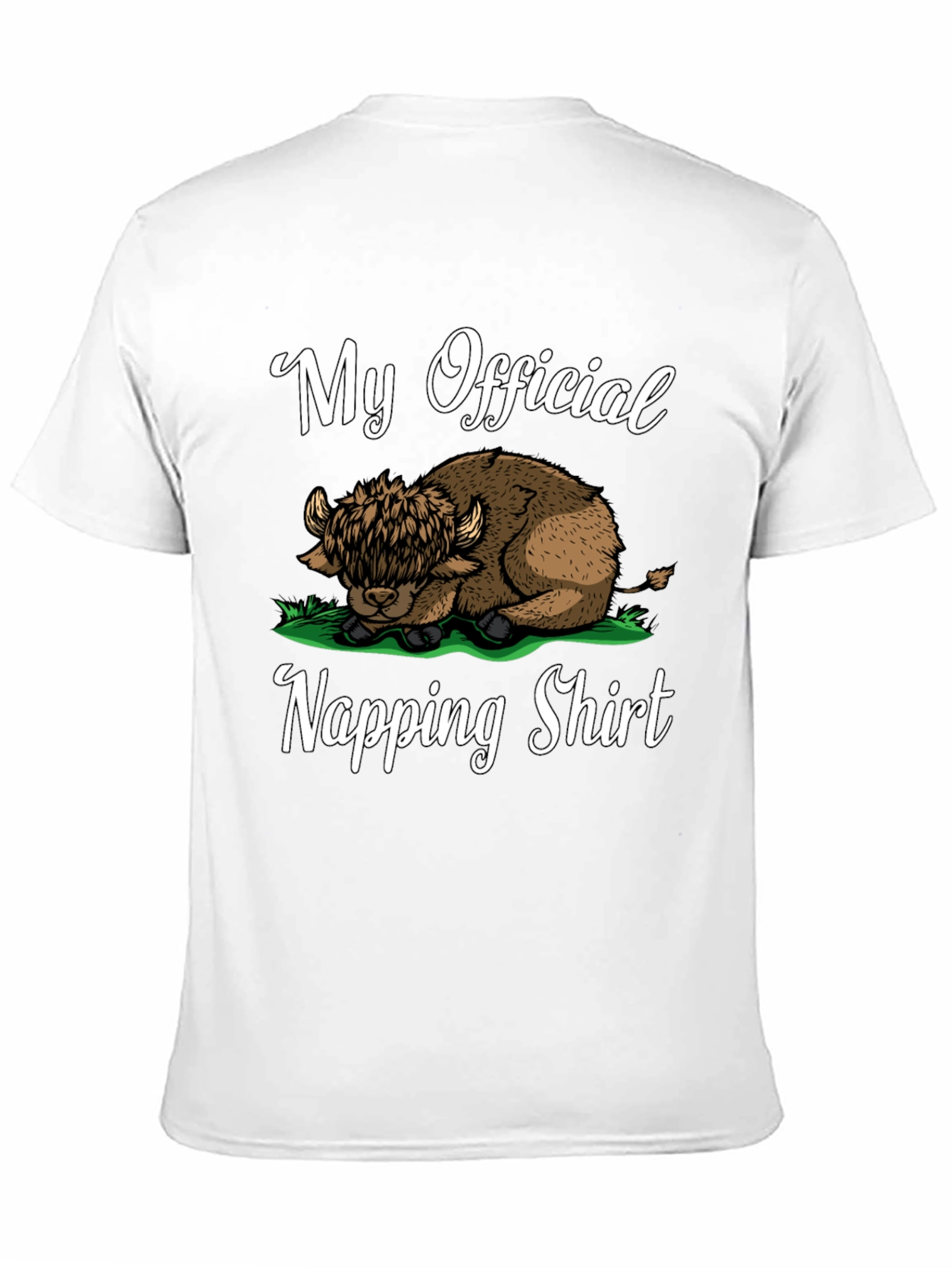 Embrace your love for naps with this charming black T-shirt. Featuring a cute Highland cow design nestled on a patch of green grass, this tee proudly proclaims "My Official Napping Shirt" in a stylish white font. The soft-looking material ensures comfort, making it the perfect choice for cozy days at home or casual outings. Ideal for animal lovers and relaxation enthusiasts, this shirt is more than just apparel; it's a statement. Wear it to express your laid-back personality and your appreciation for quality nap time. Its classic fit makes it a versatile addition to any wardrobe. Get yours today and let the world know you're serious about napping!