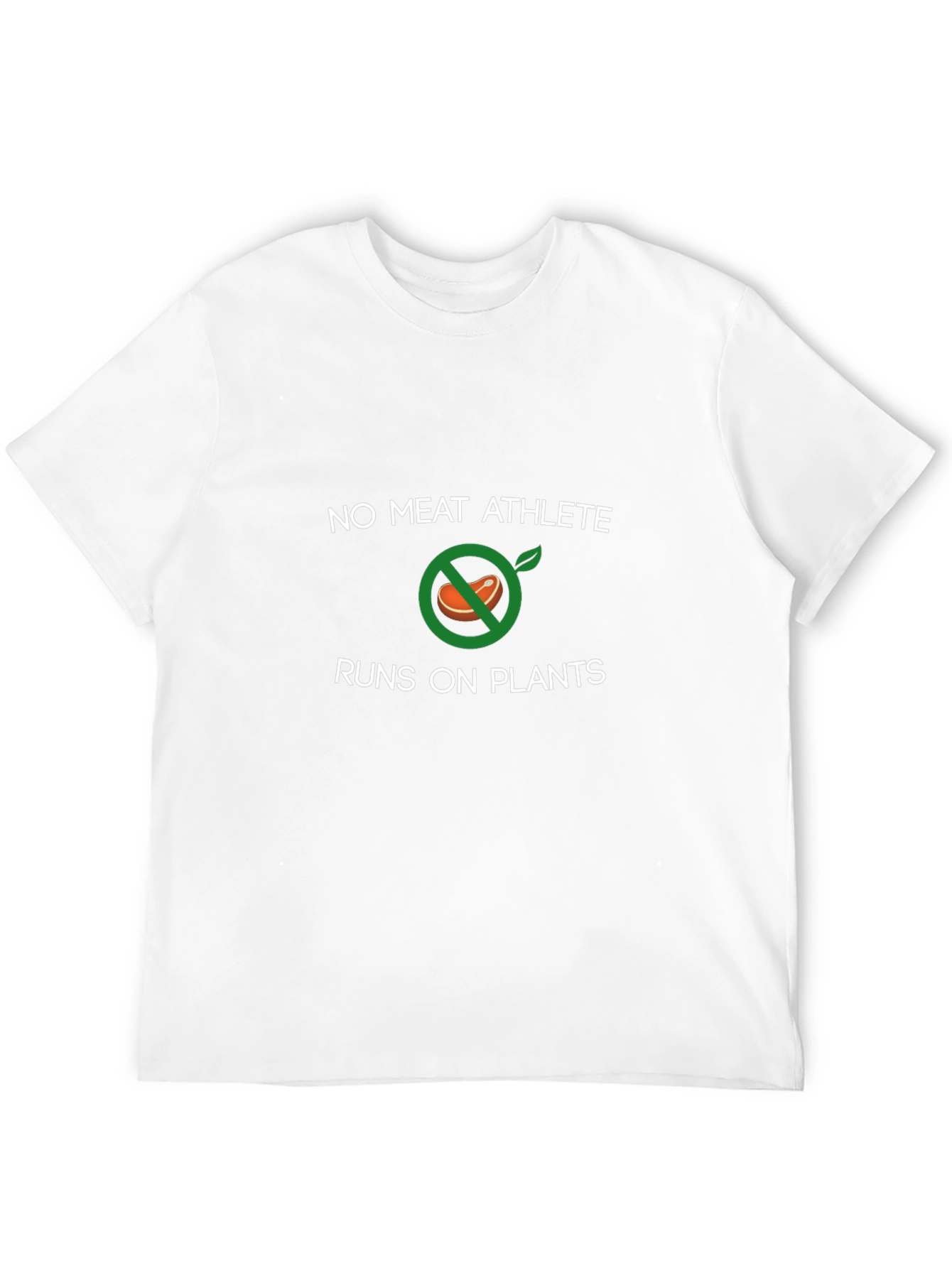 Show off your plant-powered lifestyle with this "No Meat Athlete" T-shirt. This tee features a bold design with the text "No Meat Athlete" and "Runs on Plants", complemented by a crossed-out meat graphic with a leaf accent, making it perfect for vegans and vegetarians who are passionate about fitness. Made from a comfortable, breathable fabric, this shirt is ideal for workouts, casual wear, or making a statement about your dietary choices. Wear it to the gym, on a run, or simply around town to promote a healthy, plant-based lifestyle.