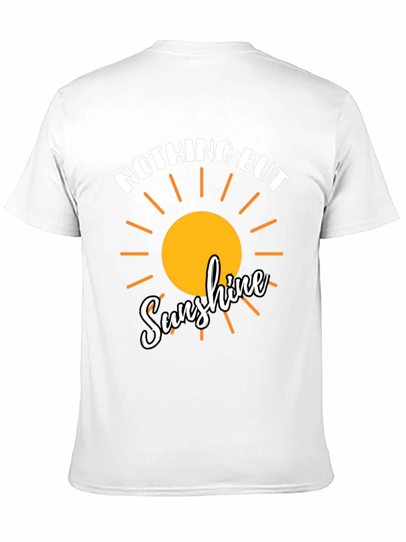 Radiate positivity with this stylish black t-shirt featuring a vibrant "Nothing But Sunshine" graphic. The design incorporates a bright yellow sun with radiant orange rays, complemented by elegant white lettering. Made from a comfortable, breathable fabric, this tee is perfect for casual wear, summer outings, or simply spreading good vibes wherever you go. Its classic fit ensures a flattering look for everyone. Add a touch of sunshine to your wardrobe and let your style shine!