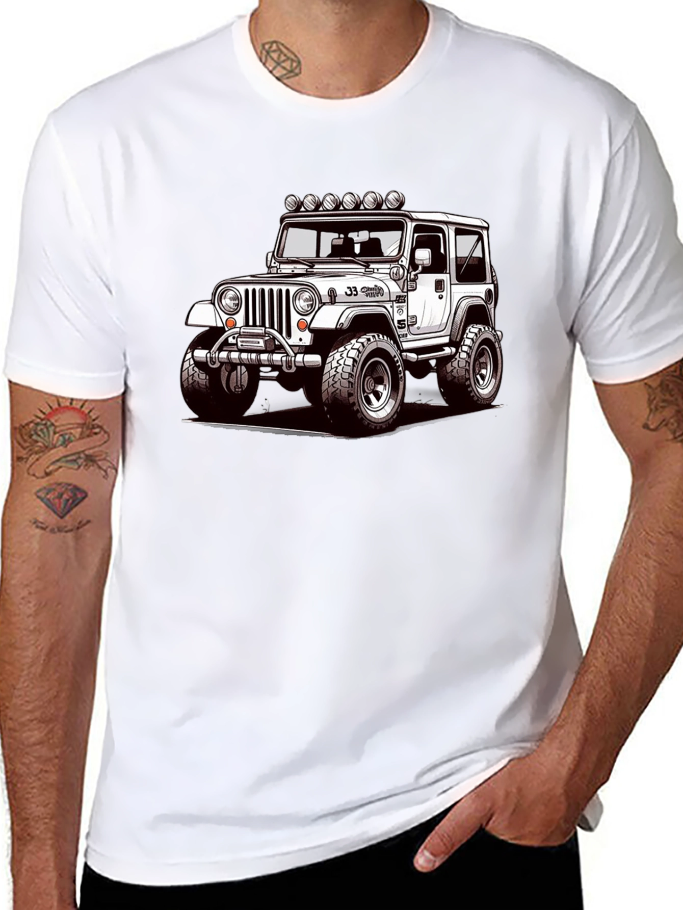 Show off your love for adventure with this stylish black t-shirt. The tee features a striking graphic of a white off-road Jeep, perfect for car enthusiasts and outdoor lovers alike. Made from a comfortable fabric, this tee is perfect for casual wear or as a statement piece. Whether you're hitting the trails or just running errands, this Jeep tee will keep you looking and feeling great. Grab yours today and showcase your adventurous side!