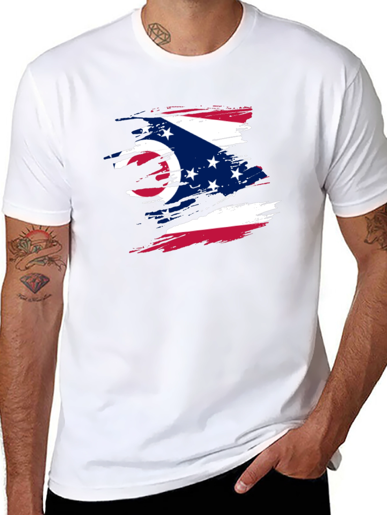 Showcase your Ohio pride with this unique graphic t-shirt. The shirt features a distressed-style print of the Ohio state flag, blending patriotism with contemporary design. Made from a soft, breathable fabric, this tee offers all-day comfort and is perfect for casual wear. The vibrant colors of the flag stand out against the shirt's dark background, making it a statement piece. Ideal for sporting events, state celebrations, or everyday wear, this t-shirt is a stylish way to represent your love for Ohio. Durable and easy to care for, it's a must-have for any proud Ohioan's wardrobe.