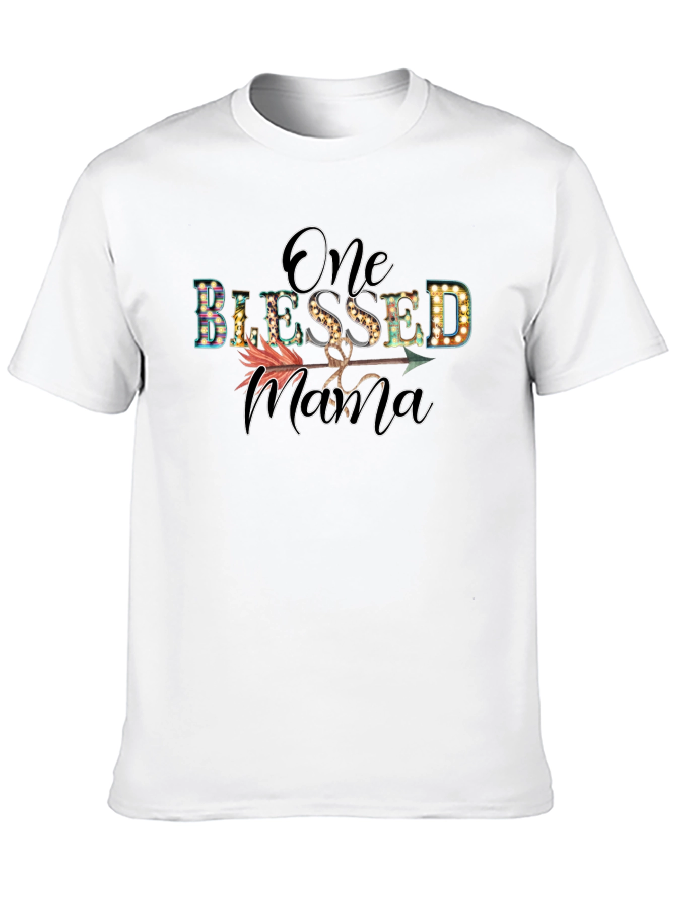 Show off your blessed status with this stylish black graphic tee. Featuring a trendy "One Blessed Mama" design with a decorative arrow, this shirt is perfect for casual wear. The vibrant lettering adds a pop of color. Crafted from a comfortable fabric, it's ideal for everyday use or special occasions. Pair it with jeans or leggings for a chic look. It's a great way to celebrate motherhood. This tee makes an excellent gift for moms. Wear your heart on your sleeve and express your gratitude!