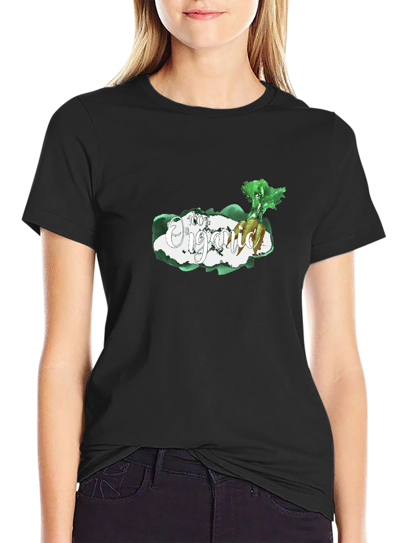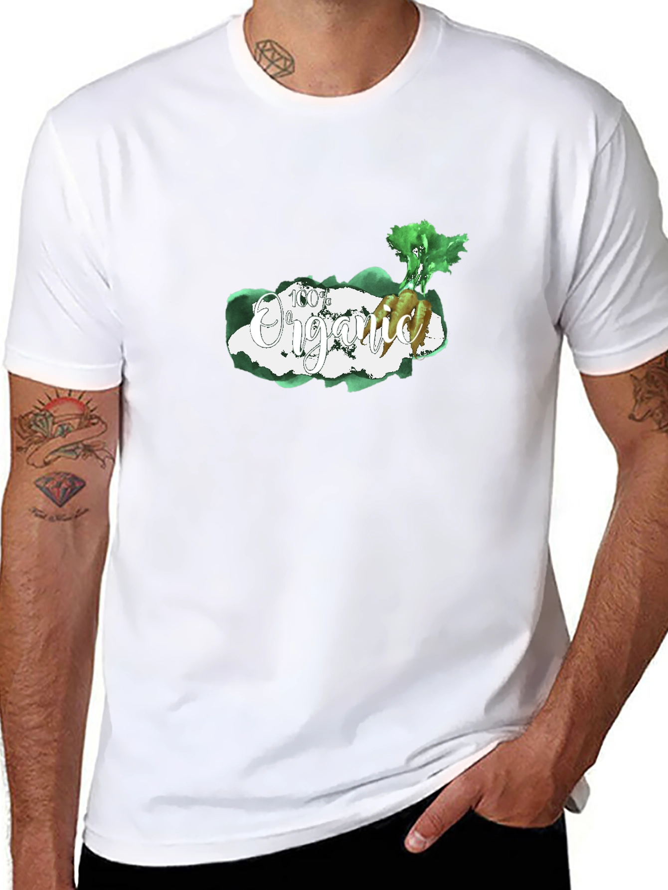 Show off your love for all things natural with this unique t-shirt! This black tee features a striking design with the words "100% Organic" emblazoned on a white and green backdrop, accompanied by a fun and whimsical graphic of fresh carrots with leafy tops. Made from a comfortable material, this shirt is perfect for everyday wear. Ideal for casual outings, farmers' markets, or simply lounging at home, this t-shirt makes a statement about your commitment to healthy and sustainable living. Pair it with jeans or shorts for a relaxed and stylish look. Let the world know you're all about that organic life!
