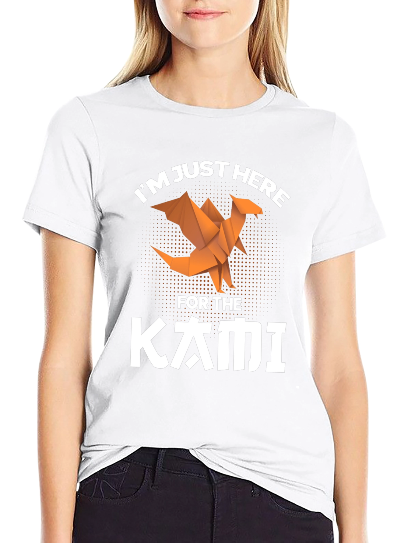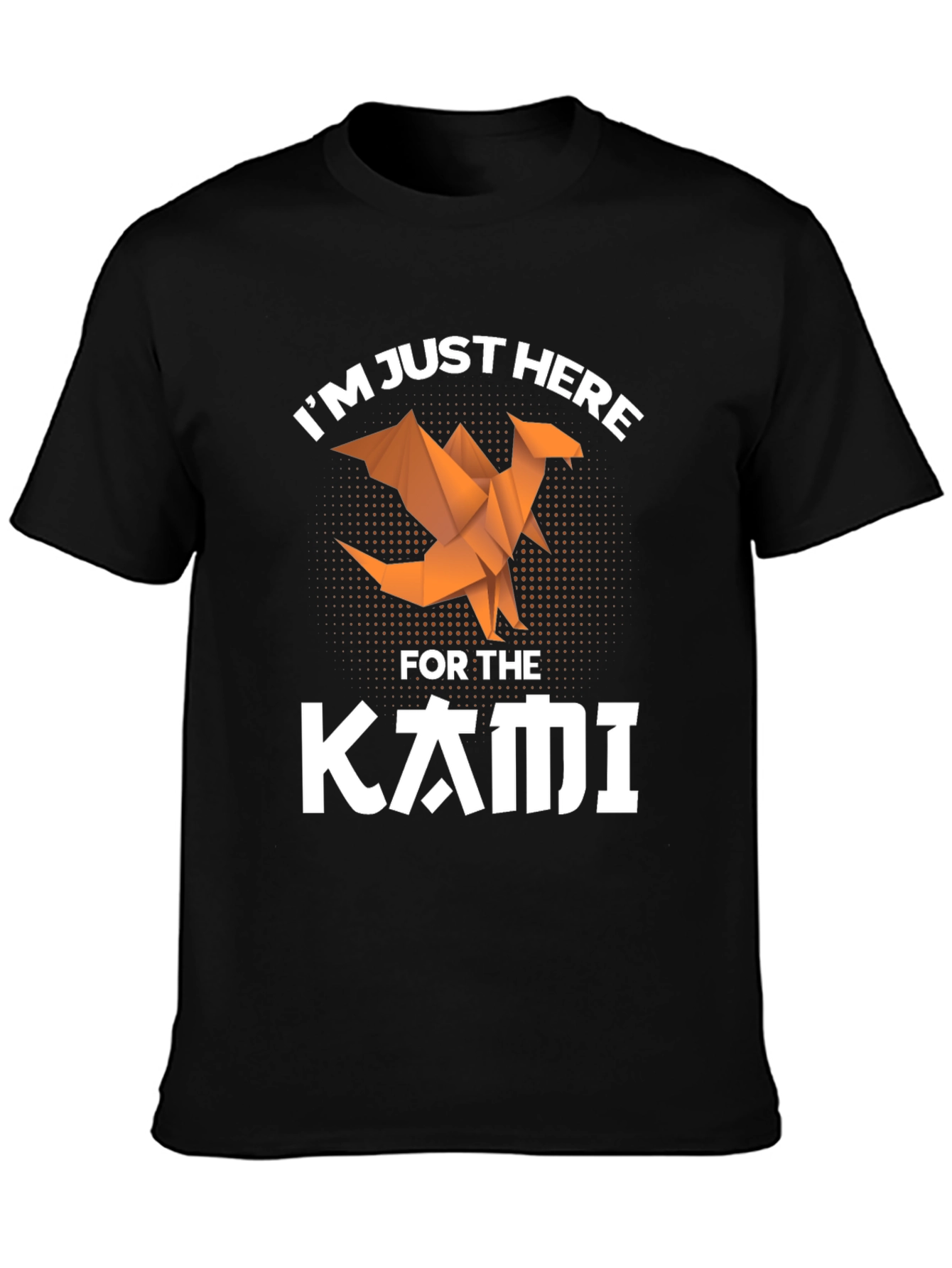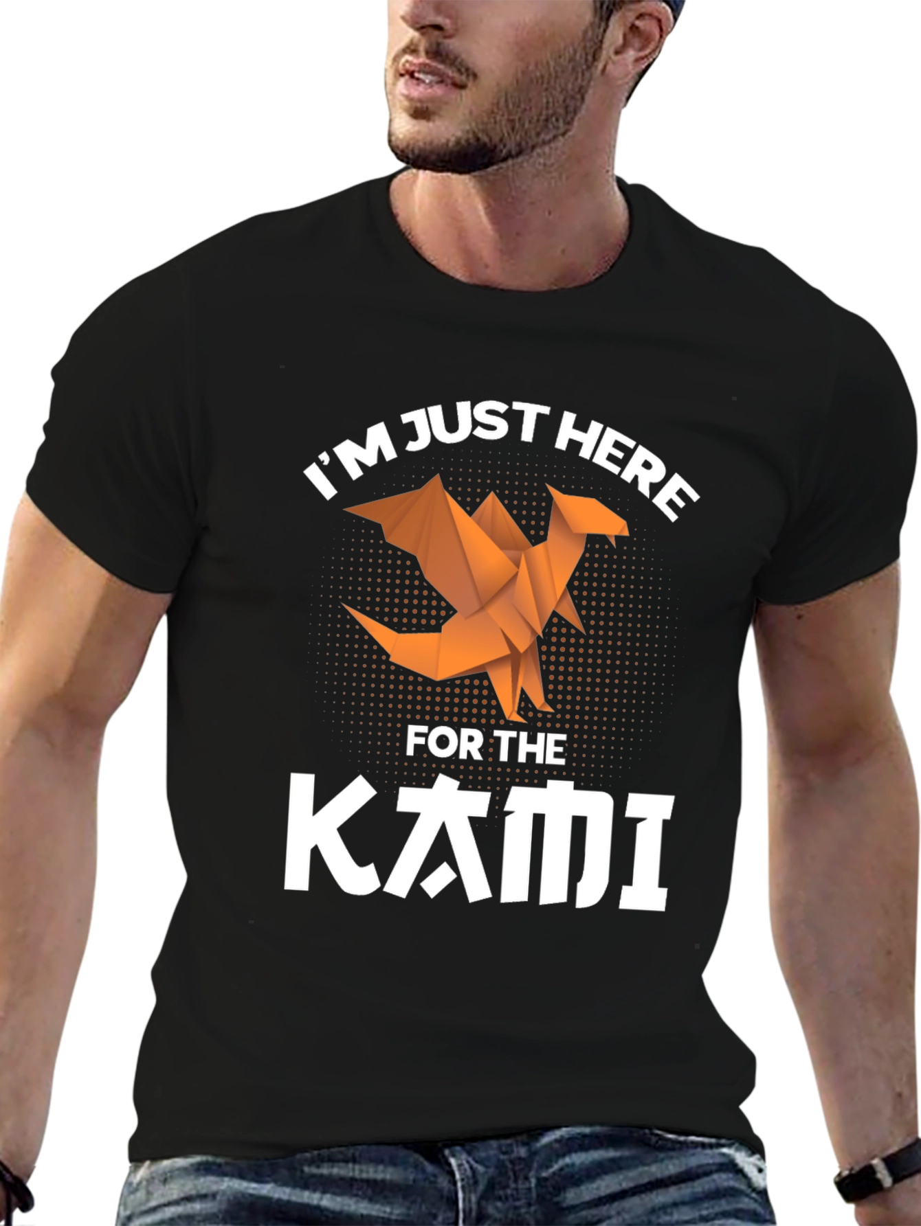 Show your love for origami with this unique graphic tee! This black t-shirt features a detailed origami dragon graphic, perfect for anyone who loves Japanese culture, paper art, or mythical creatures. The bold, white text reads 'I'm Just Here for the KAMI' adding a playful touch. Made from a soft, comfortable fabric, this shirt is ideal for casual wear. It’s a great conversation starter and a fun addition to any wardrobe. Perfect for casual outings, conventions, or just lounging at home. Get yours today and let your inner artist shine!