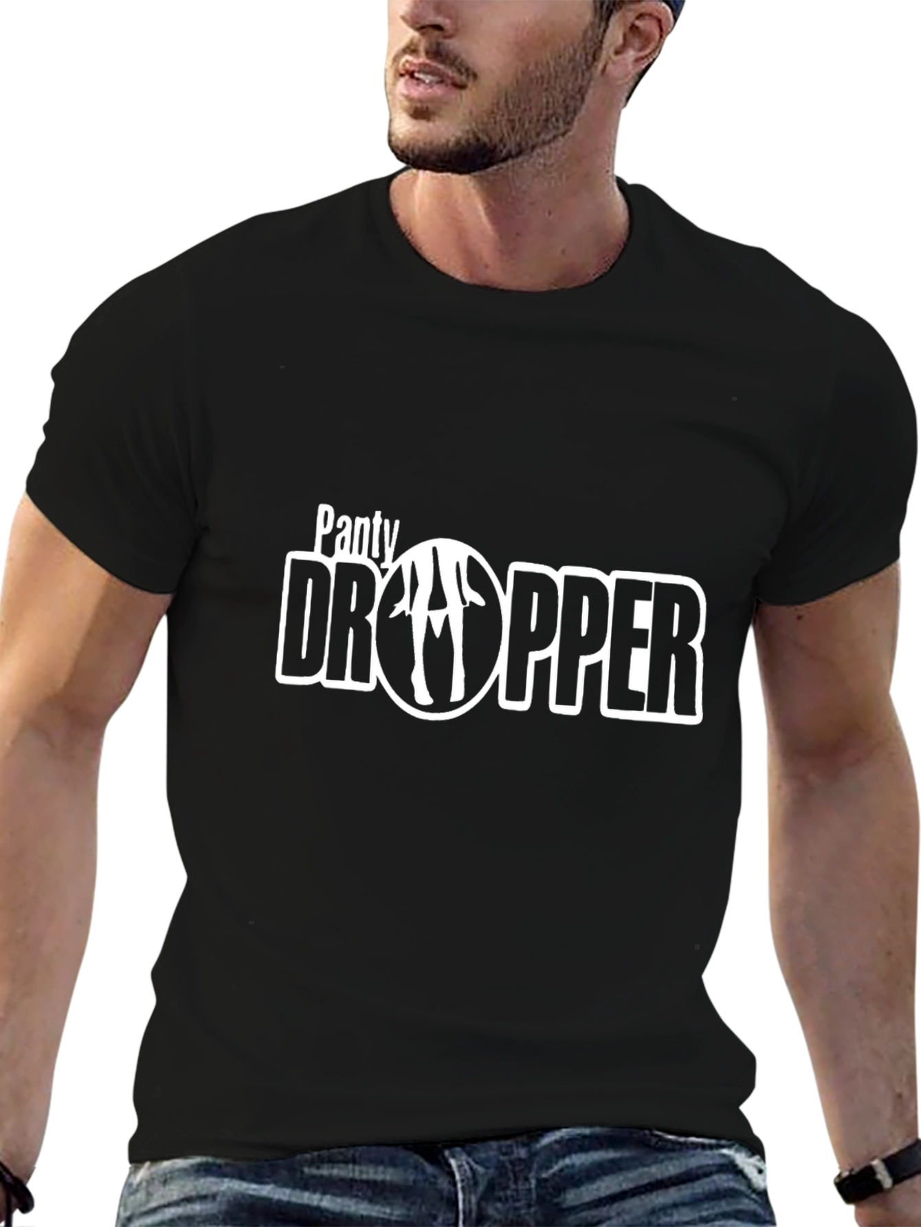 Make a statement with this bold black t-shirt! Featuring a playful "Panty Dropper" graphic with a suggestive design, this tee is sure to turn heads. The crisp white print pops against the dark background, creating a striking contrast. Made from a comfortable, breathable fabric, this shirt is perfect for casual outings, parties, or just lounging around. Show off your sense of humor and confident style with this attention-grabbing graphic tee. A definite conversation starter!