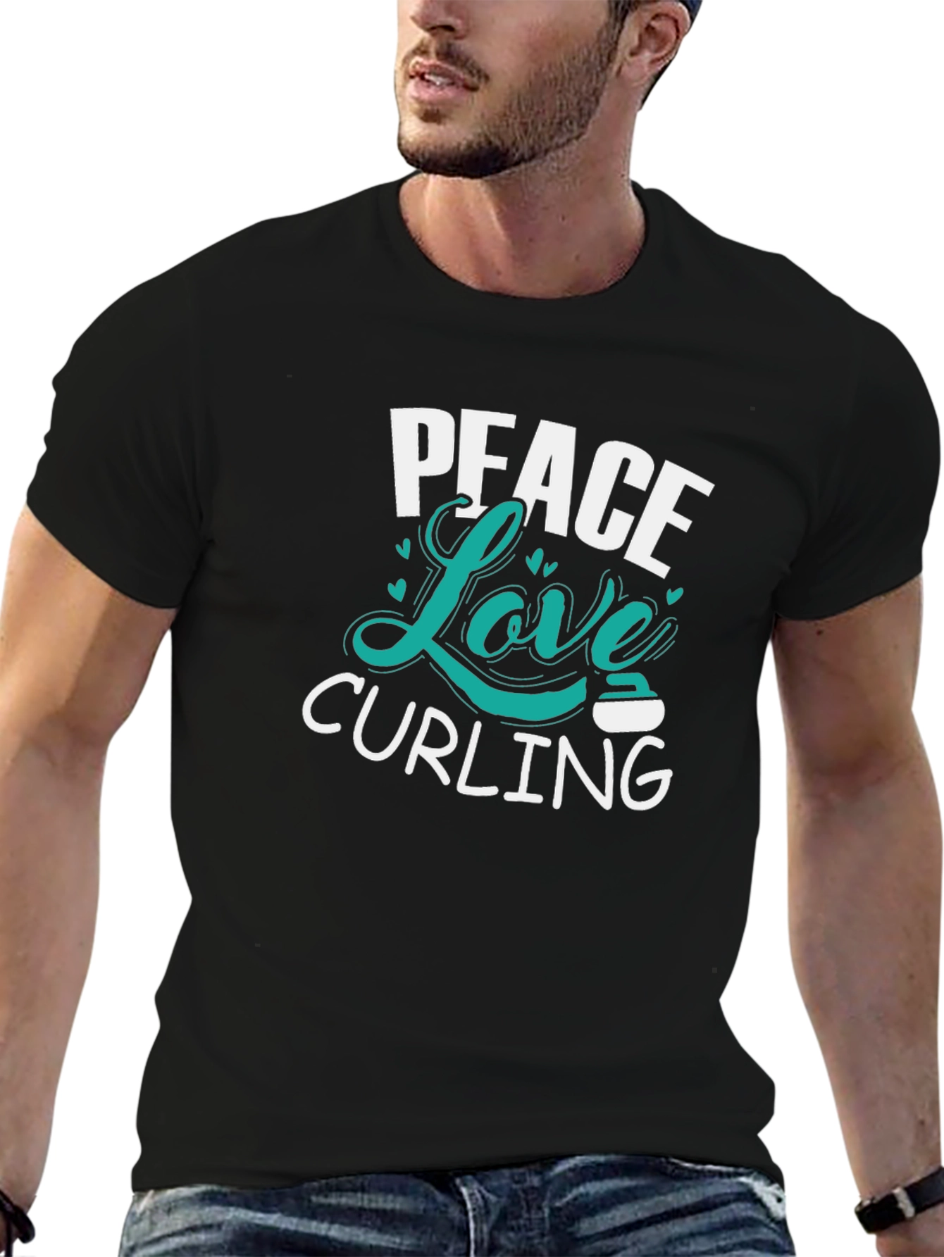Show your love for curling with this stylish and comfortable t-shirt! Featuring a bold "Peace Love Curling" graphic, this shirt is perfect for curling enthusiasts. The design incorporates vibrant teal accents and a playful font, making it a fun and eye-catching piece. Made from a soft, breathable fabric, this t-shirt ensures all-day comfort whether you're on the ice or relaxing off-duty. Its classic fit makes it an ideal gift for curlers of all ages. Let everyone know your passion for the game with this standout tee!