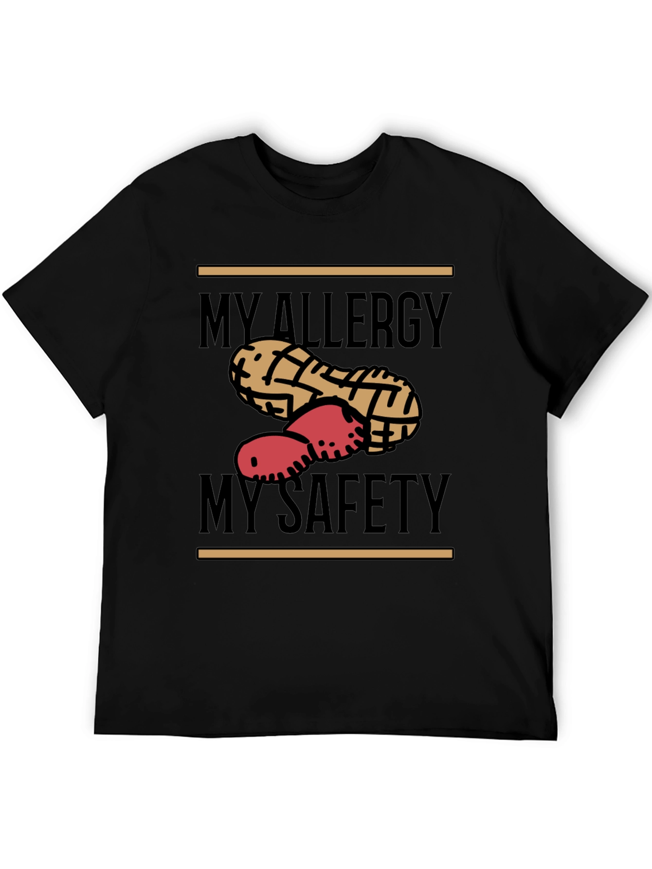 Stay safe and spread awareness with this black, crew neck t-shirt. The tee features a peanut graphic and bold text that reads "My Allergy, My Safety," making it perfect for those with peanut allergies or supporters. Crafted from comfortable fabric, it's ideal for everyday wear. Show your support while keeping your safety in mind. Great for school, outings, or casual wear. This is more than just a shirt; it's a statement.