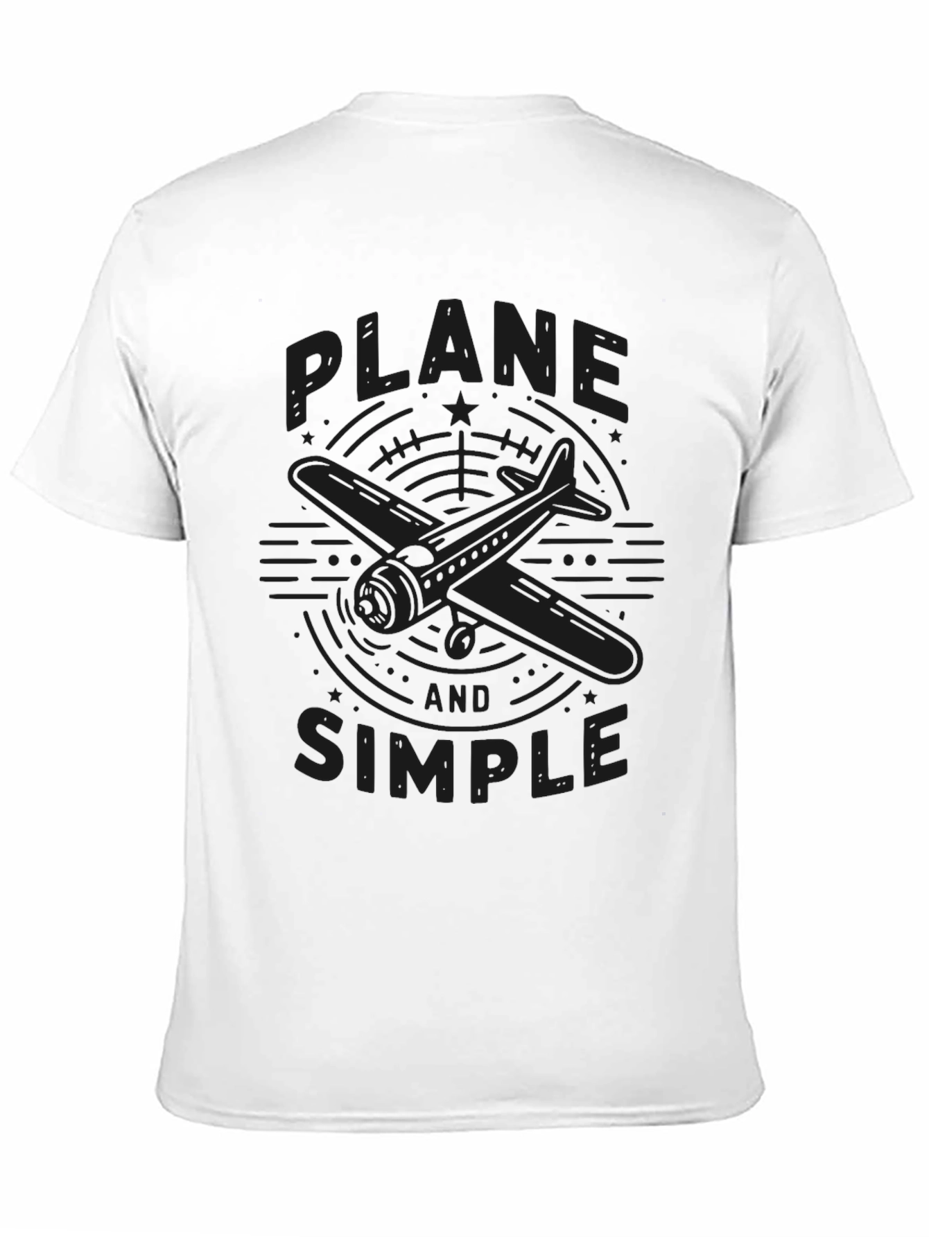 This classic black t-shirt features a unique graphic design that aviation enthusiasts will love. The dark print showcases a vintage airplane design, emblazoned with the words "Plane and Simple", giving it a retro yet stylish look. The shirt appears to be made from a soft, comfortable material, perfect for everyday wear. The design makes it a great conversation starter and a fun addition to any casual wardrobe. Ideal for pilots, plane spotters, or anyone who appreciates the freedom of flight, this t-shirt is a simple way to show off your passion.
