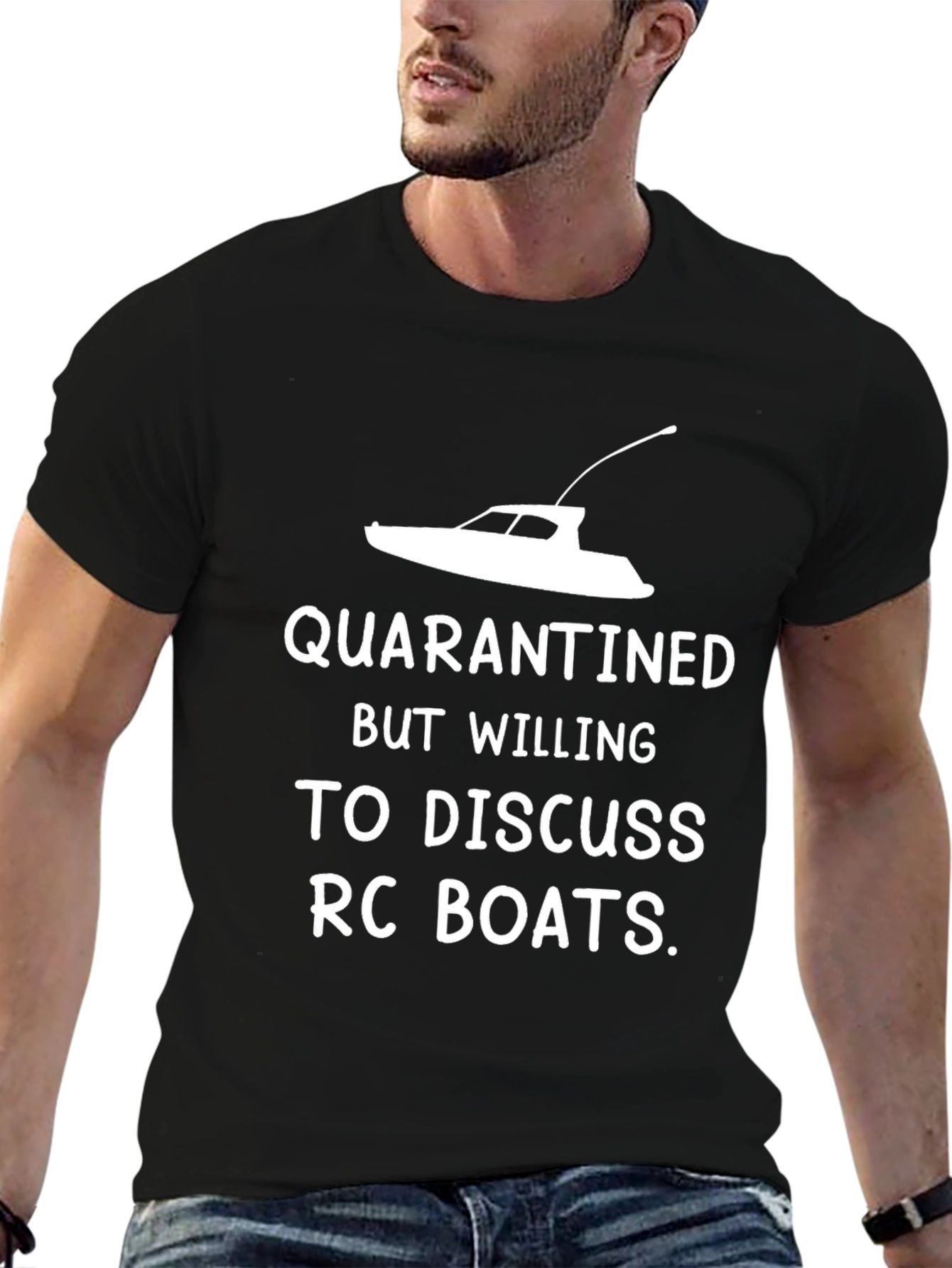 Show off your passion for RC boats with this comfortable and stylish black t-shirt. The shirt features a bold, white graphic of an RC boat above the phrase "QUARANTINED BUT WILLING TO DISCUSS RC BOATS." Made from a soft, breathable fabric, this tee is perfect for casual wear, hobby meetups, or relaxing at home while you tinker with your RC boat collection. It's a great conversation starter for fellow enthusiasts and a fun way to express your interests. Whether you're a seasoned RC boat captain or just starting out, this shirt is a must-have addition to your wardrobe.