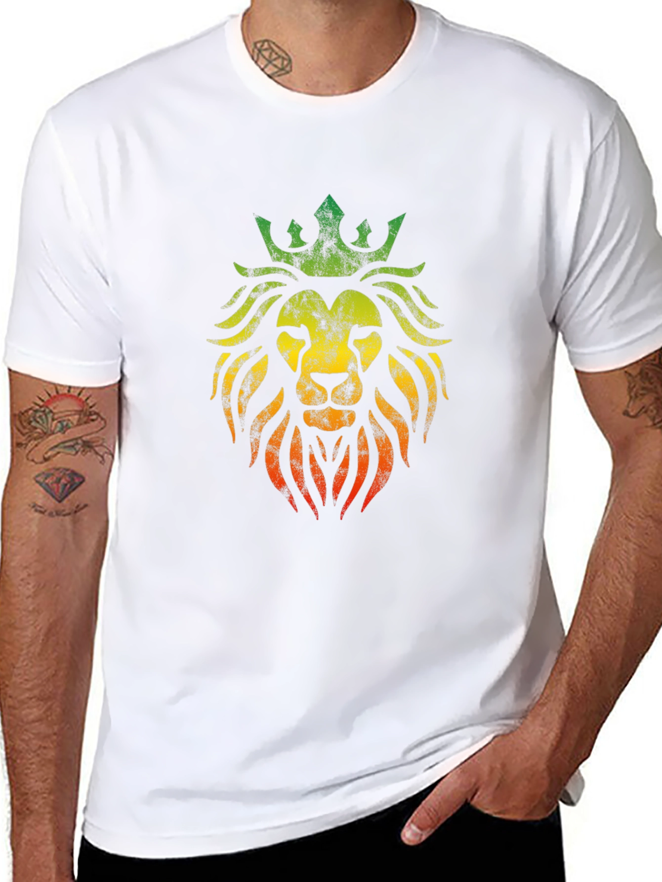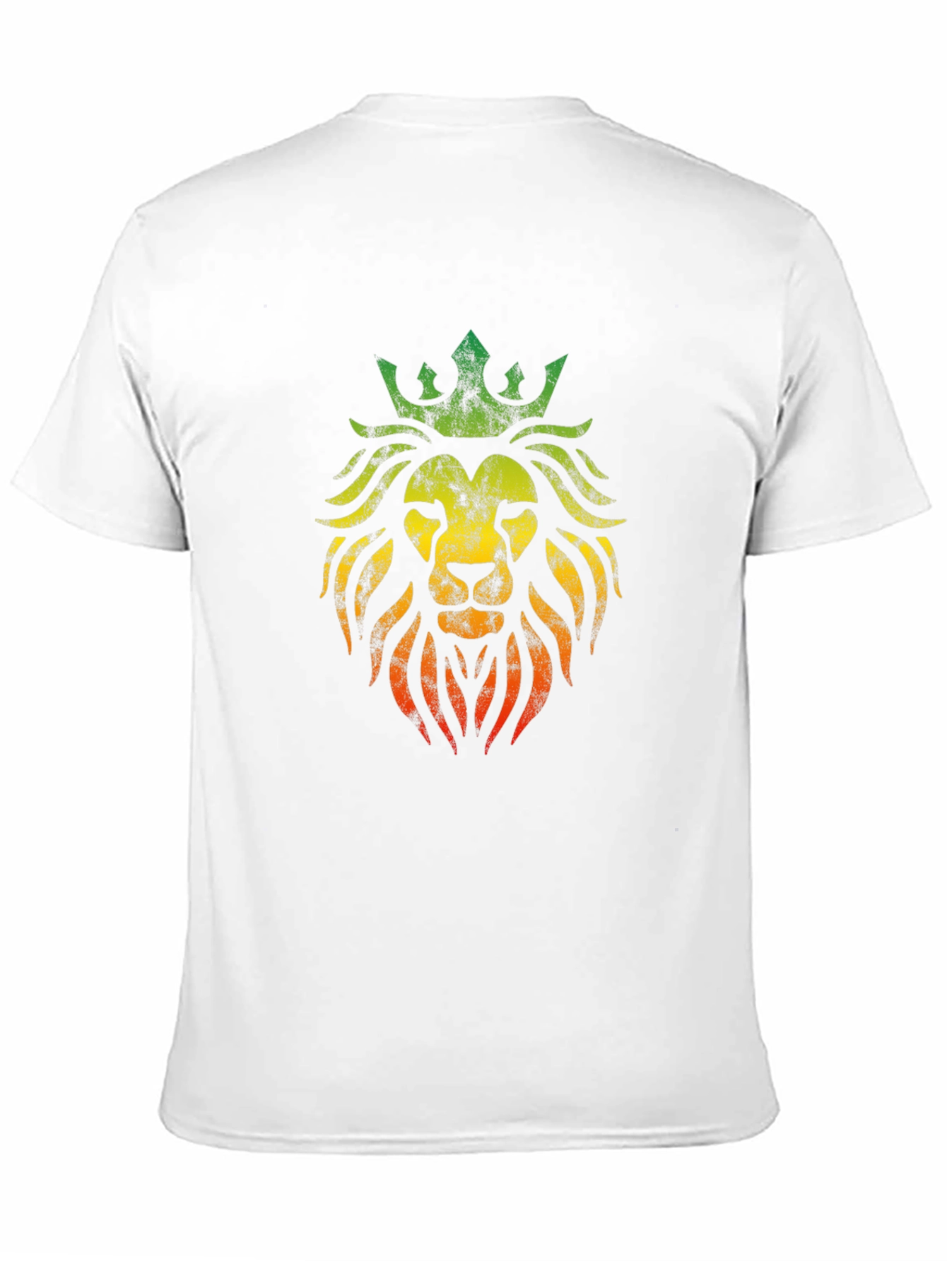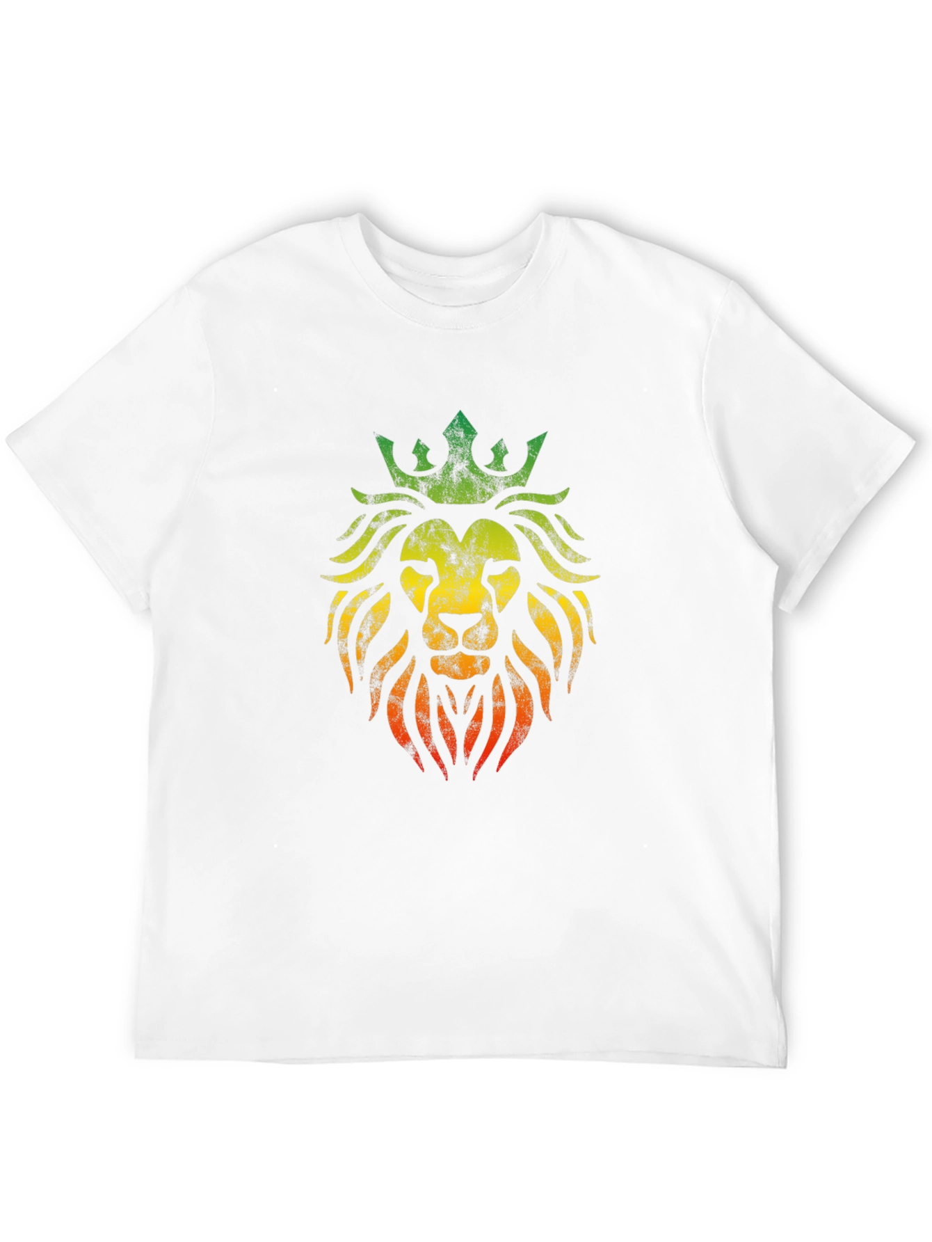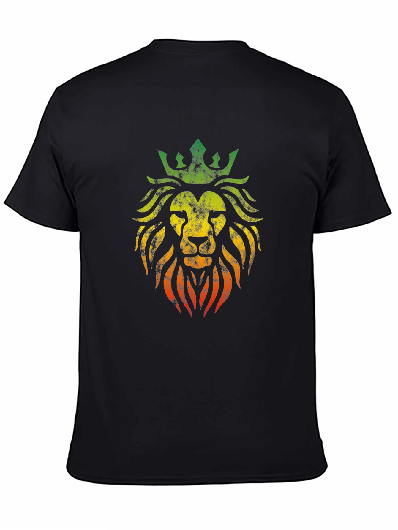 Showcase your love for reggae and royalty with this eye-catching men's black t-shirt. The shirt features a vibrant, distressed-style graphic of a lion's head, complete with a crown in classic Rasta colors: green, yellow, and red. The design commands attention and adds a touch of edgy style to any casual outfit. Crafted from what appears to be a soft and comfortable fabric, this tee is perfect for everyday wear, concerts, or expressing your unique personality. Pair it with jeans or shorts for a relaxed, cool look. This t-shirt is sure to become a favorite in your wardrobe.