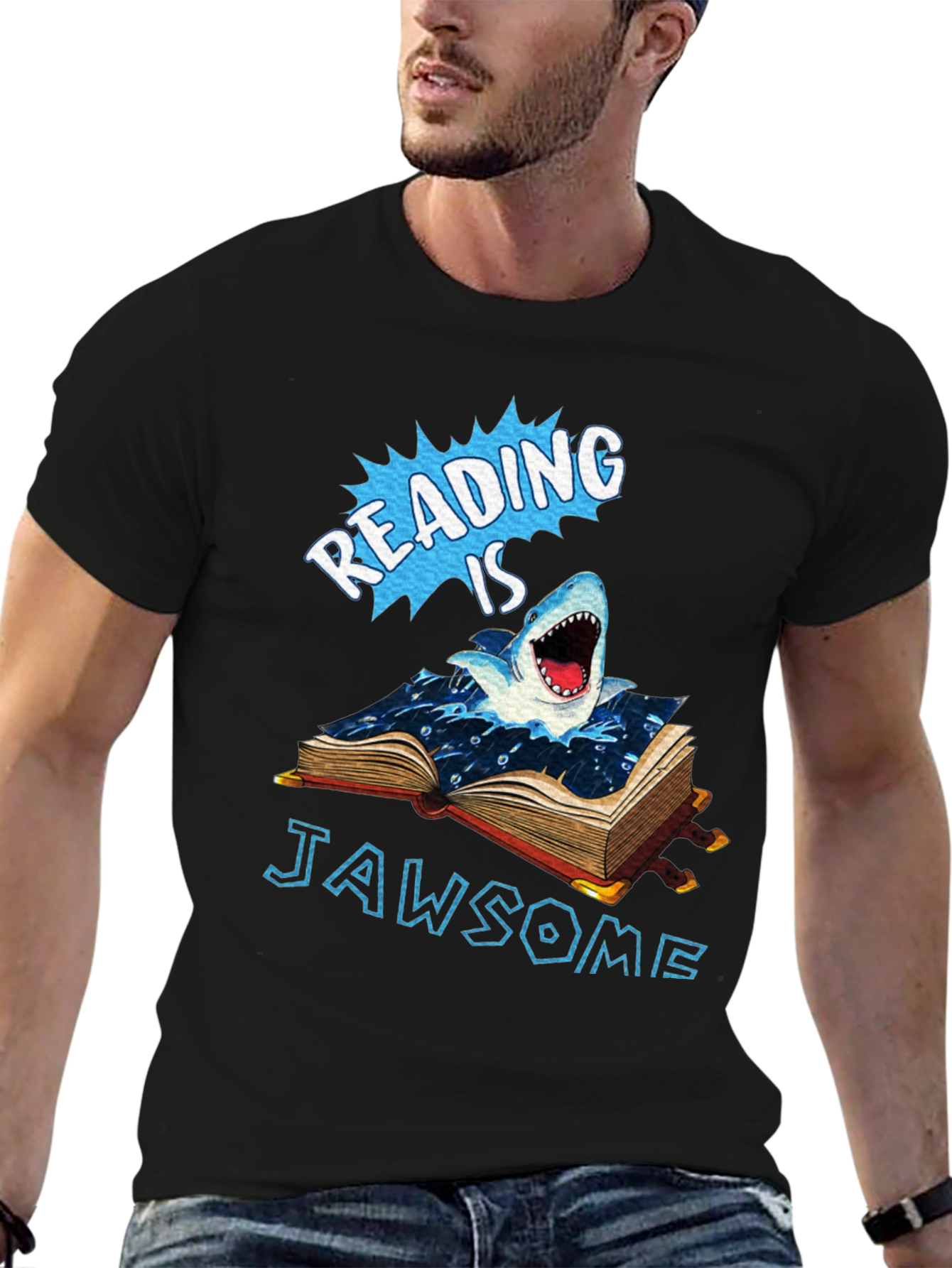 Dive into reading with this fun "Reading is Jawsome" t-shirt! Featuring a shark emerging from an open book filled with ocean water, this tee is perfect for book lovers and shark enthusiasts alike. The design is vibrant and eye-catching, making it a standout piece. Made from comfortable materials, it's ideal for casual wear, library visits, or school. Show off your love for reading and marine life with this unique and stylish shirt!
