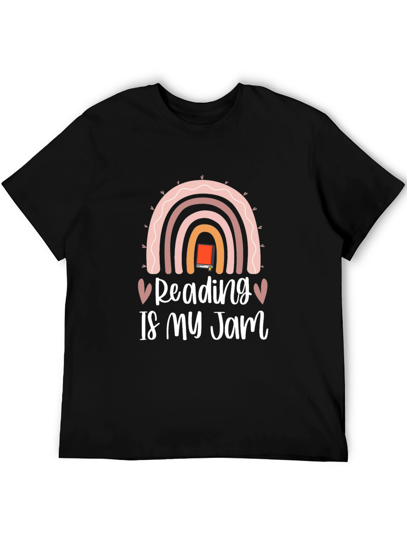 Show your love for reading with this stylish and comfortable black t-shirt. Featuring a charming rainbow design and the playful phrase "Reading Is My Jam," this tee is perfect for bookworms of all ages. The graphic includes a cute book illustration, adding a touch of whimsy. Made from soft, breathable fabric, it's ideal for everyday wear, library visits, or cozy reading sessions at home. A great gift for teachers, librarians, or anyone who appreciates a good book! This shirt is a fun and fashionable way to express your passion for reading. Add it to your wardrobe today!