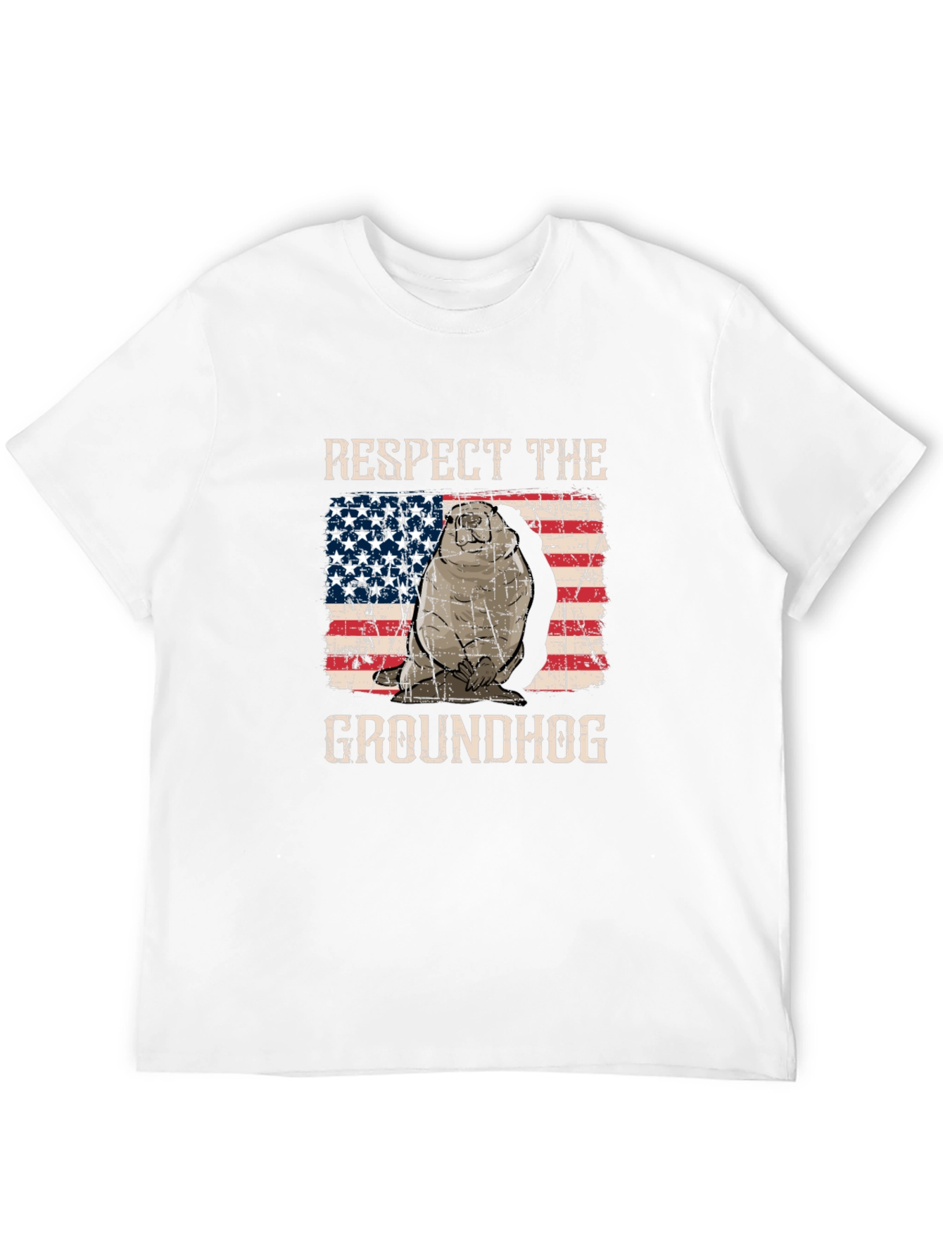 Show your love for Groundhog Day with this unique graphic tee! Featuring a distressed American flag backdrop, this shirt displays a charming groundhog illustration. The bold text "RESPECT THE GROUNDHOG" adds a touch of humor and patriotism. Made from comfortable, breathable fabric, this tee is perfect for casual wear, holidays, or as a conversation starter. Ideal for groundhog enthusiasts, history buffs, or anyone who appreciates quirky graphic designs. Get yours today and celebrate Groundhog Day in style!