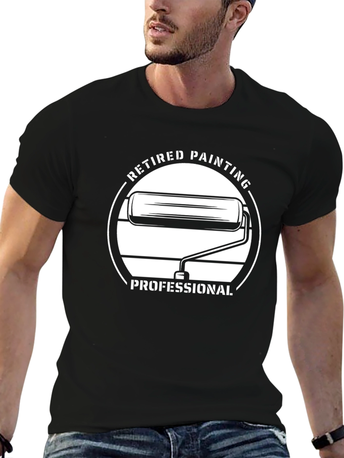 Show off your painting expertise with this classic black t-shirt. Featuring a prominent white graphic of a paint roller encircled by the words "RETIRED PAINTING PROFESSIONAL," this shirt boldly declares your seasoned experience in the field. The design has a vintage feel. Crafted from comfortable, breathable fabric, this tee is perfect for casual wear, DIY projects around the house, or as a fun gift for the retired painter in your life. Make a statement and let everyone know you've earned your stripes with this unique and eye-catching t-shirt.