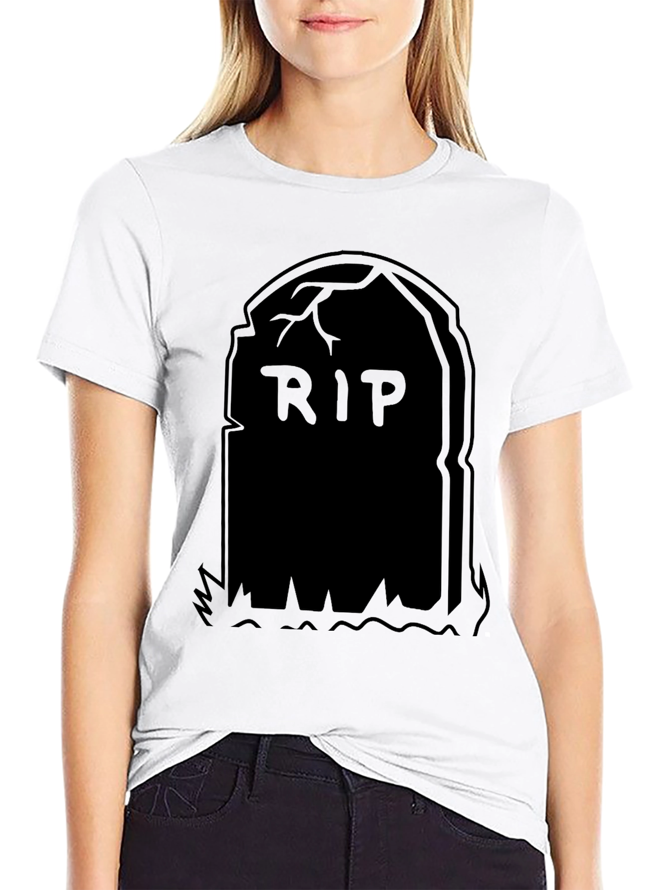 Embrace the spirit of Halloween with this striking black graphic tee. Made from comfortable, breathable fabric, this t-shirt features a bold tombstone design with the letters 'RIP' etched into the stone. The graphic is eye-catching and perfect for spooky season events, casual wear, or adding an edgy touch to your everyday style. Pair it with jeans or dress it up with a jacket for a versatile look. This tee is a must-have for those who love Halloween, gothic aesthetics, or simply want to make a statement.