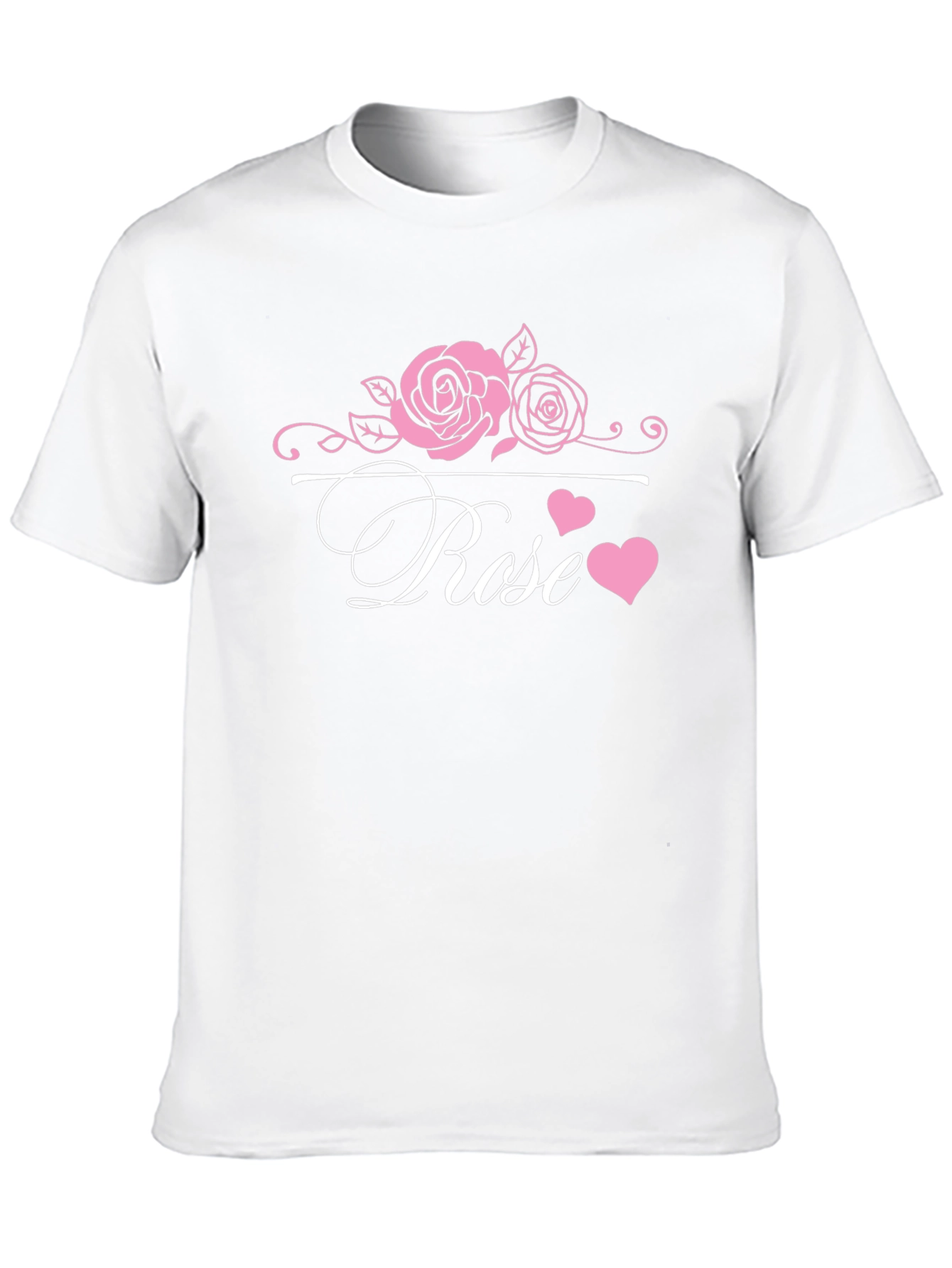 This stylish black t-shirt features a charming "Rose" design, making it a perfect addition to your wardrobe. The graphic includes delicate pink roses and hearts, creating a romantic and elegant look. Made from a soft, comfortable fabric, this tee is ideal for everyday wear. Perfect for casual outings, dates, or simply expressing your love for floral designs. The shirt's classic fit ensures comfort and versatility. Pair it with jeans, skirts, or shorts for a variety of stylish looks. Show off your fashionable side with this unique and eye-catching t-shirt.