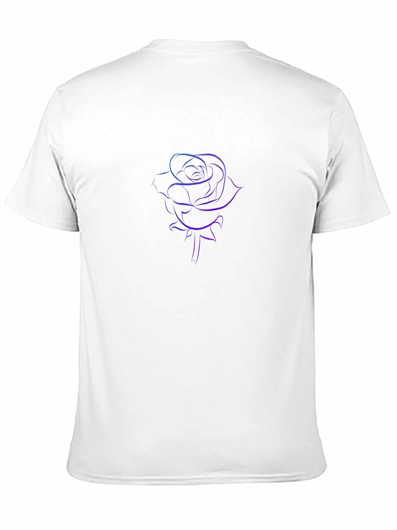 This black t-shirt features a minimalist rose design, created with a striking gradient of blue and purple line art. The simple yet elegant design is suitable for casual wear, making it a versatile addition to any wardrobe. Crafted from comfortable fabric, this tee is perfect for everyday wear, offering both style and comfort. The rose graphic is placed centrally on the chest, ensuring the design remains eye-catching. Wear it on its own or use it as a stylish base layer, this tee is sure to make a subtle but impactful statement.