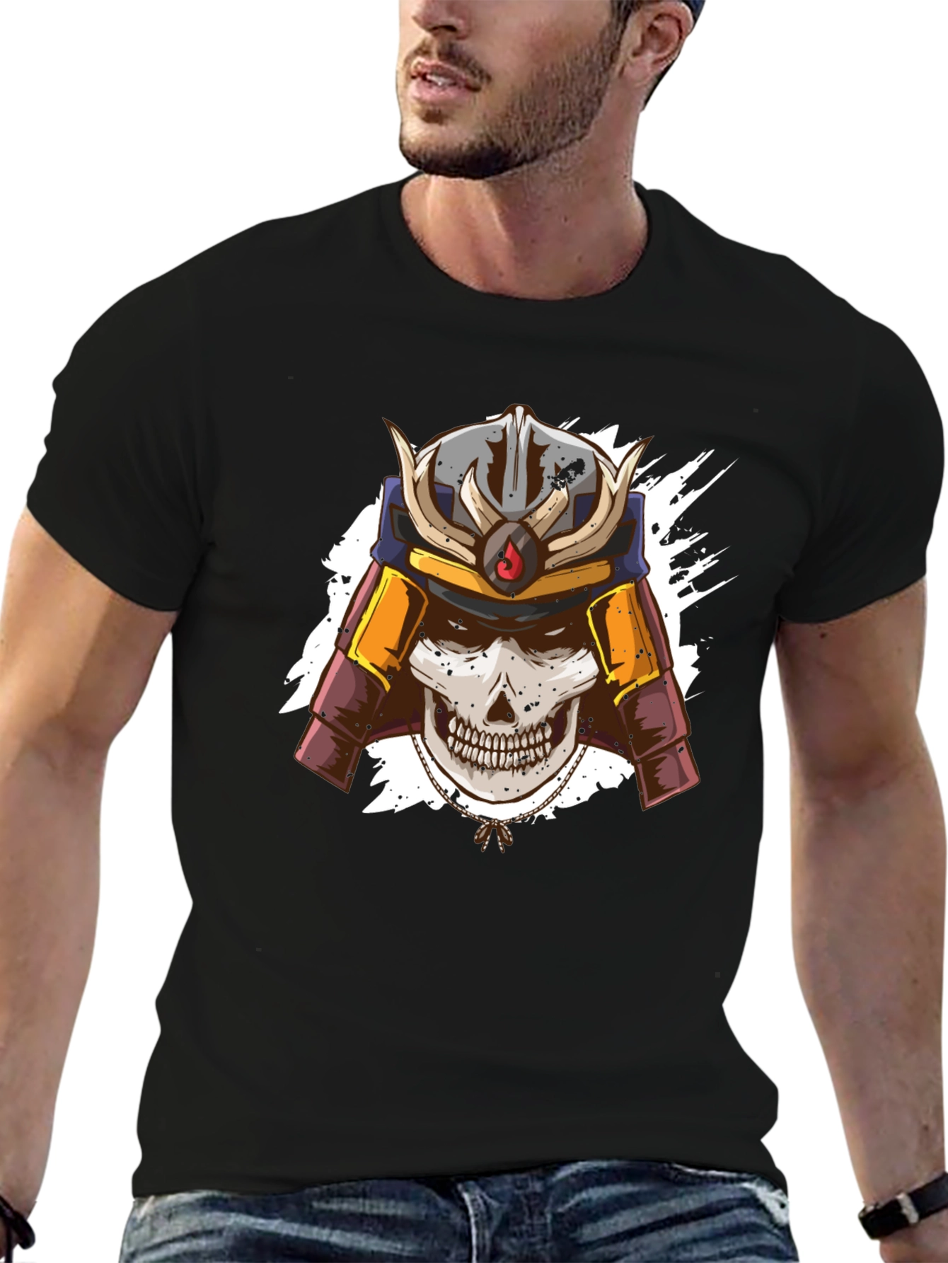 Unleash your inner warrior with this striking Samurai Skull T-Shirt. Featuring a detailed graphic of a skull adorned with a samurai helmet, this tee blends edgy style with a touch of Japanese culture. The design is printed on a comfortable, high-quality black fabric that's perfect for everyday wear. Whether you're hitting the streets or just chilling with friends, this T-shirt makes a bold statement. Pair it with jeans or shorts for a versatile look. The unique design is sure to turn heads and spark conversations. Upgrade your wardrobe with this standout graphic tee today!