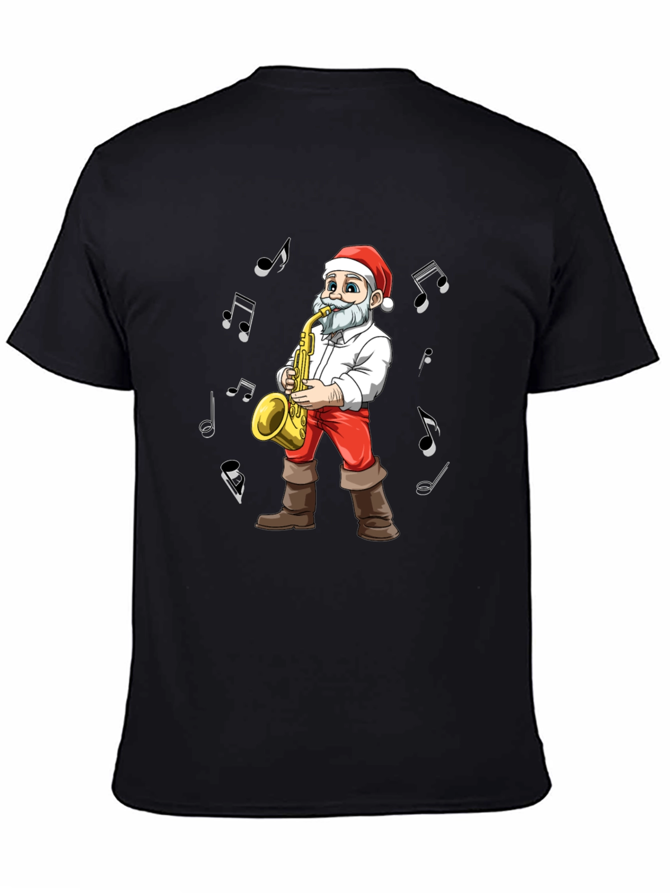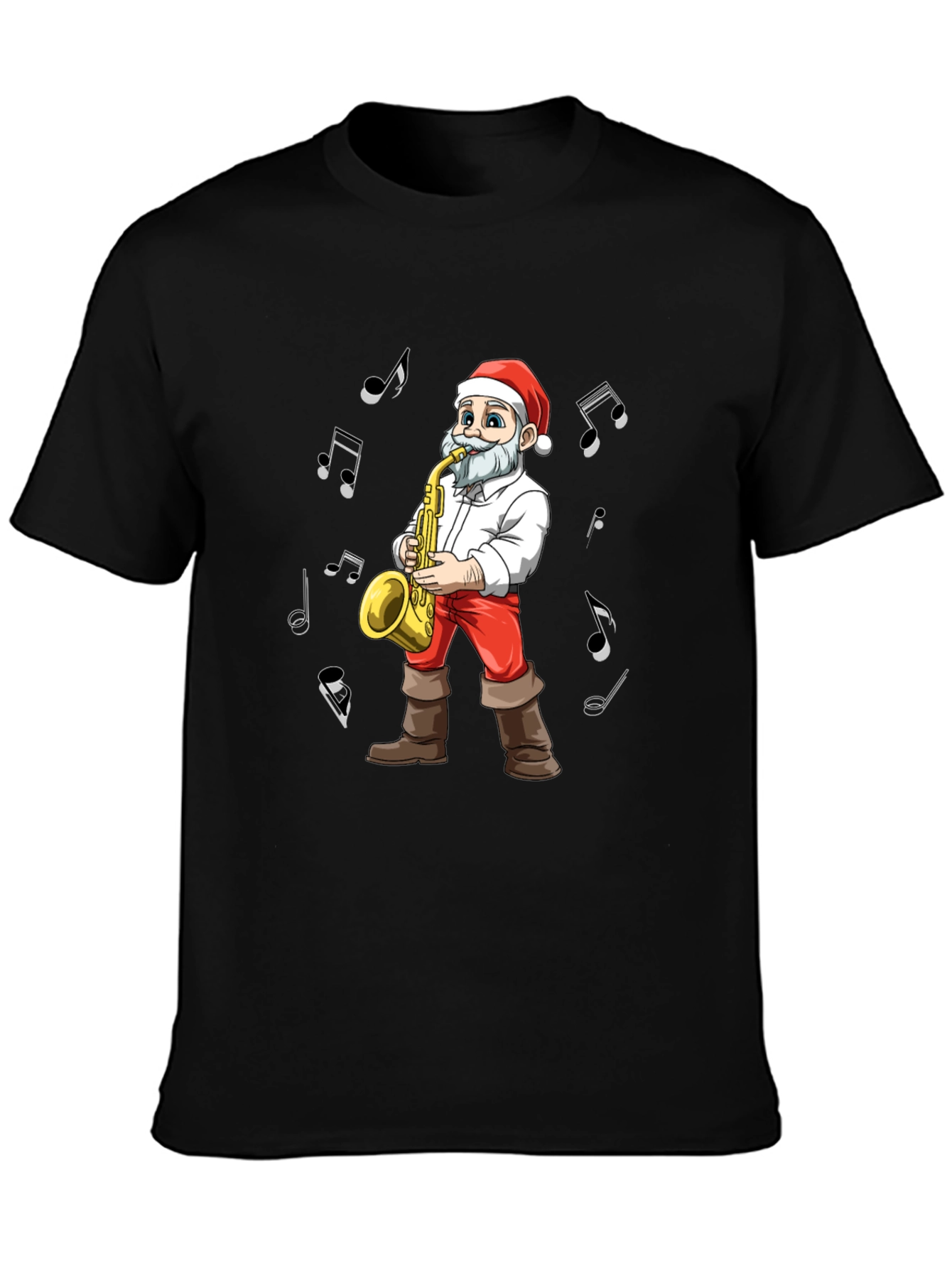 Spread holiday cheer with this unique Santa Saxophone T-Shirt. Featuring a festive Santa Claus playing the saxophone, surrounded by musical notes, this tee is perfect for music lovers and holiday enthusiasts alike. The design is printed on a comfortable, black cotton fabric, making it ideal for casual wear during the Christmas season. Show off your festive spirit and passion for music with this eye-catching graphic tee. Great for holiday parties, concerts, or everyday wear. Order yours now and get ready to jingle and jazz!