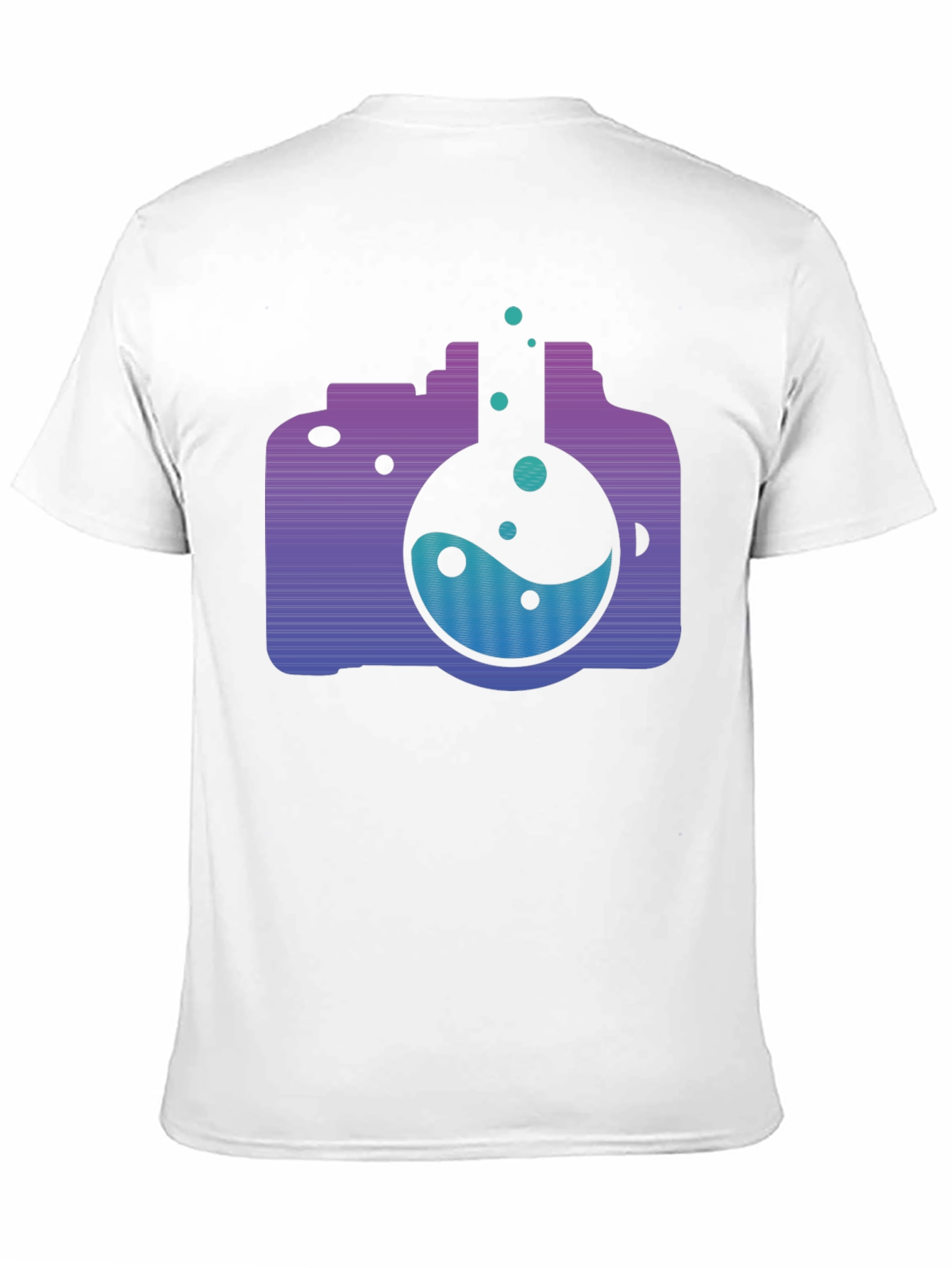 Show off your passions with this unique science camera t-shirt! The shirt features a bold, eye-catching graphic of a camera lens shaped like a science beaker filled with liquid. The purple and blue gradient design adds a modern, stylish touch to this classic black tee. Perfect for photographers, science enthusiasts, or anyone who appreciates a cool, conversation-starting design. Made from comfortable, breathable fabric, this shirt is ideal for everyday wear. Get yours today and make a statement!