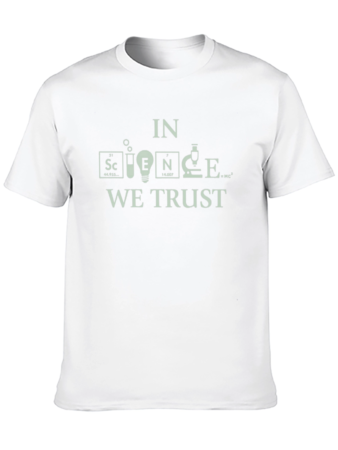 Show off your love for science with this unique graphic tee! Featuring a creative design that incorporates elements of the periodic table and scientific equipment to spell out the word "SCIENCE", this shirt is a clever and stylish statement. The phrase "IN WE TRUST" is printed above and below the science design. Made from a comfortable, breathable fabric, this t-shirt is perfect for everyday wear, science enthusiasts, teachers, or students. Makes a great gift for the science lover in your life. Get yours today and spread the love for science!