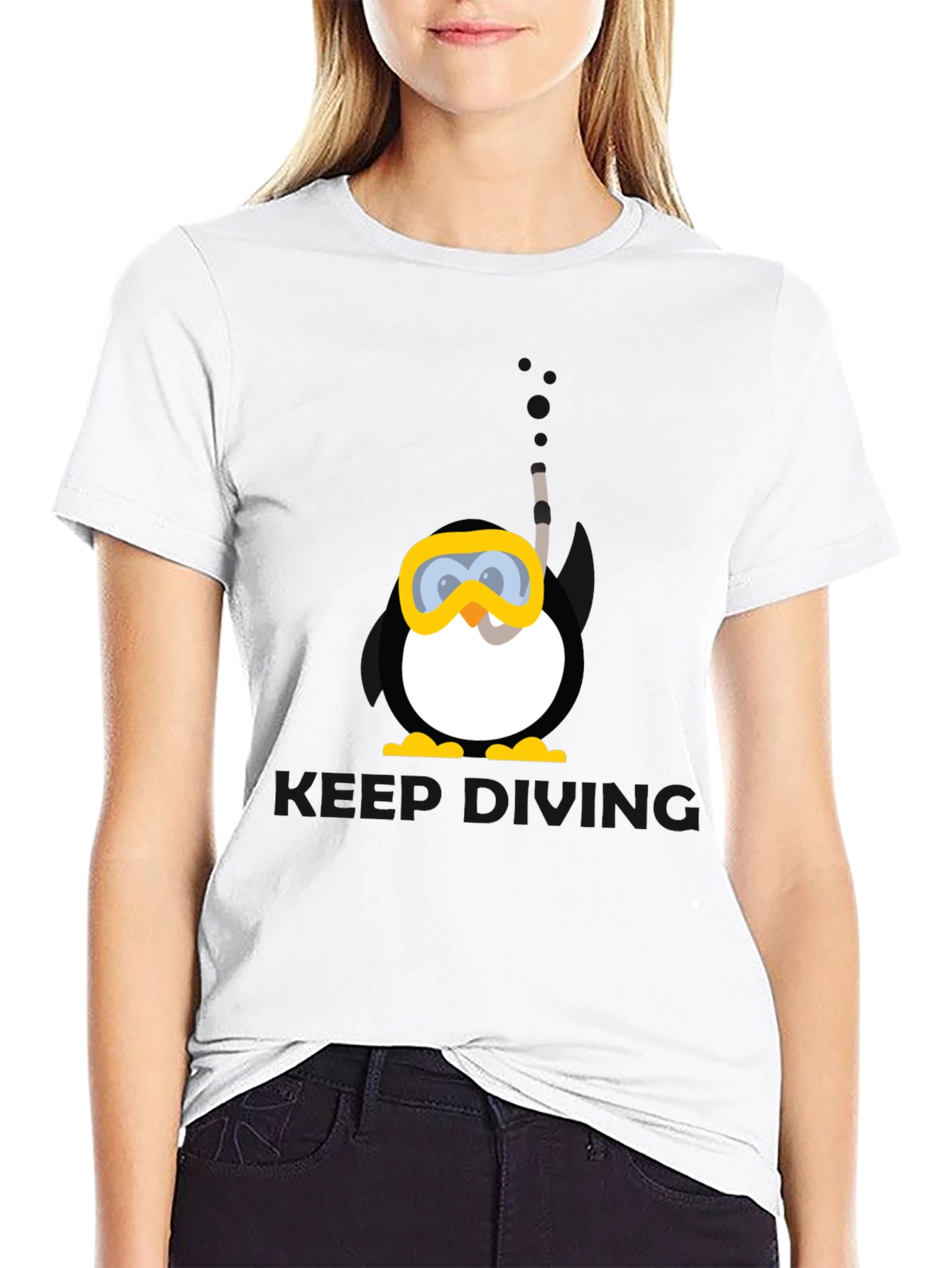 Dive into fun with this unique black t-shirt featuring a playful graphic of a penguin wearing a scuba mask and snorkel. The design adds a whimsical touch, making it a great conversation starter. Made from a soft, breathable fabric, this tee offers all-day comfort and a relaxed fit. Perfect for casual outings, beach days, or simply lounging around, this t-shirt is a must-have for any wardrobe. Show off your love for marine life and quirky style with this eye-catching tee. Grab yours today!
