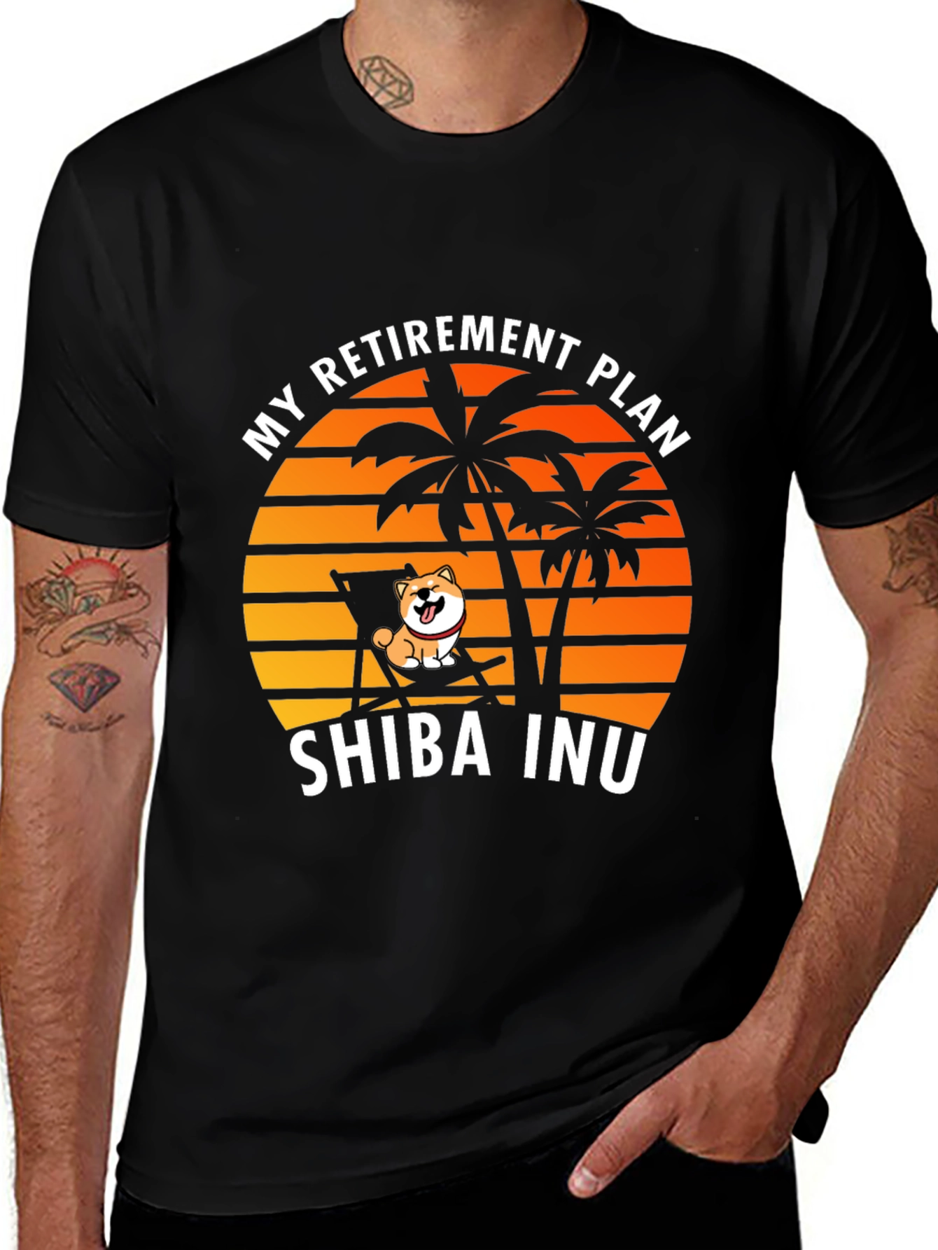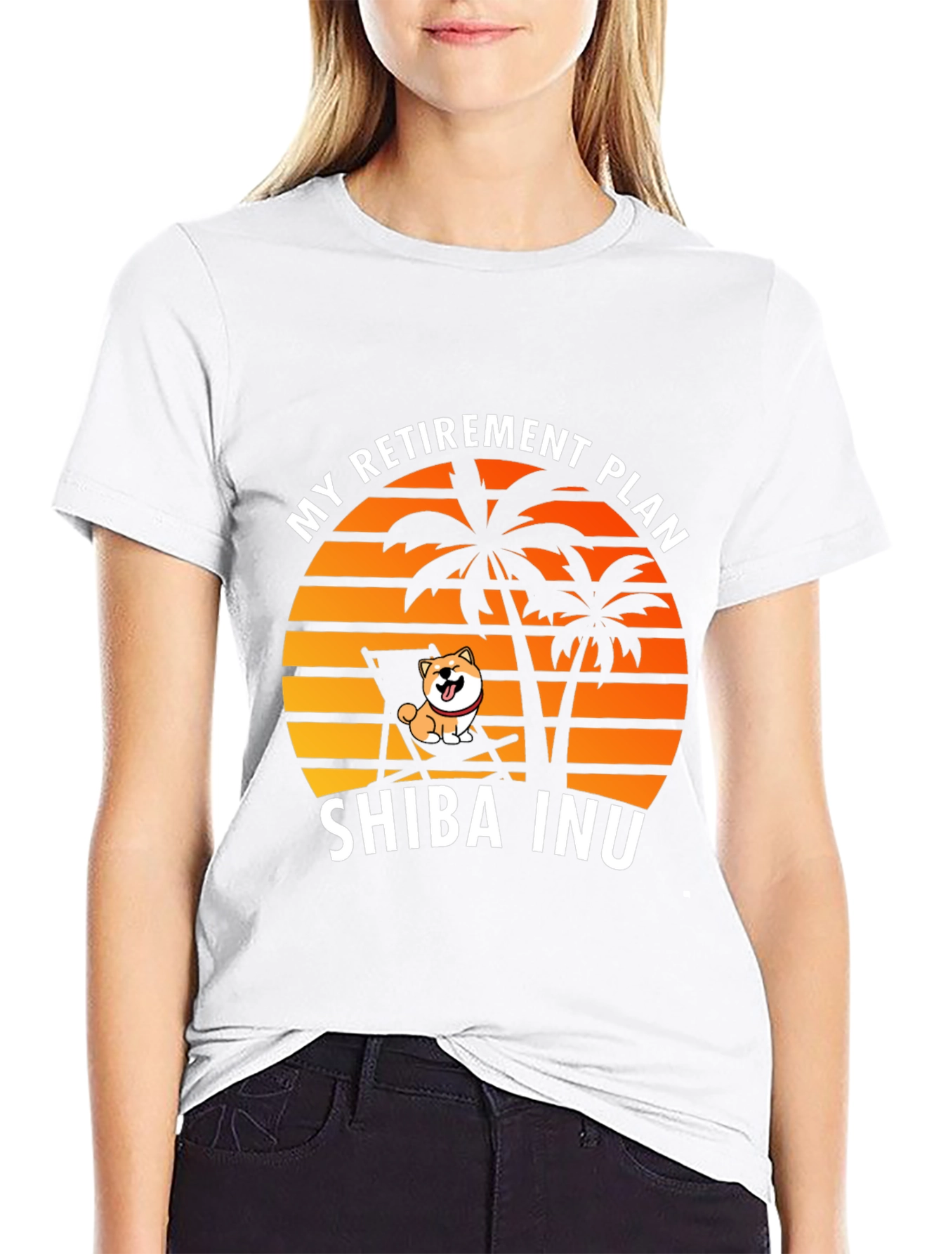 Unwind in style with this eye-catching black t-shirt, featuring a playful "My Retirement Plan Shiba Inu" design. A fun graphic displays a Shiba Inu relaxing on a beach chair between palm trees against a vibrant sunset, perfect for dog lovers and crypto enthusiasts alike. Crafted from comfortable fabric, this shirt offers a casual fit suitable for everyday wear. Show off your laid-back personality and retirement goals with this unique and stylish tee. Whether you're lounging at home or out with friends, this Shiba Inu tee is sure to spark conversations and bring smiles.