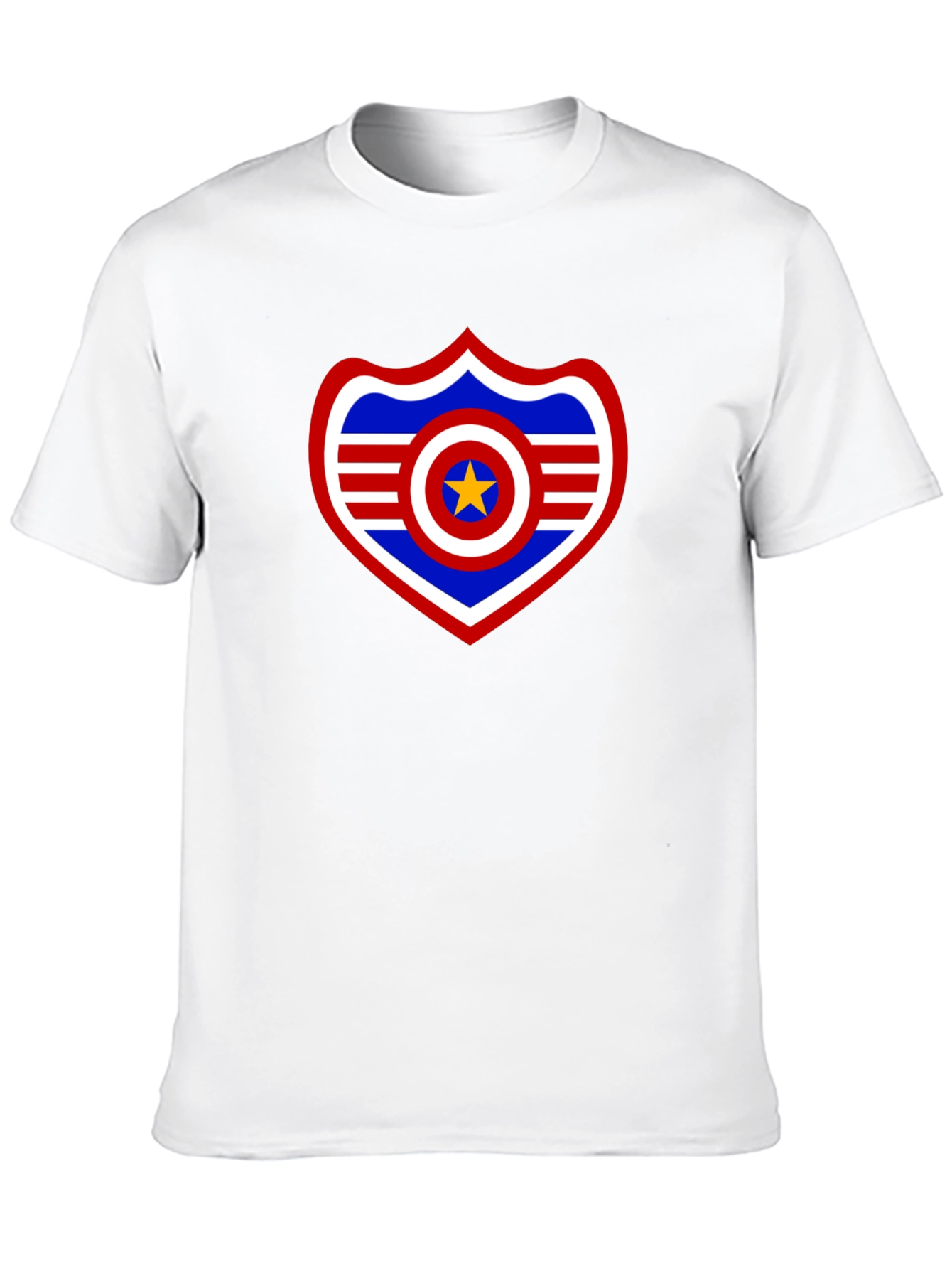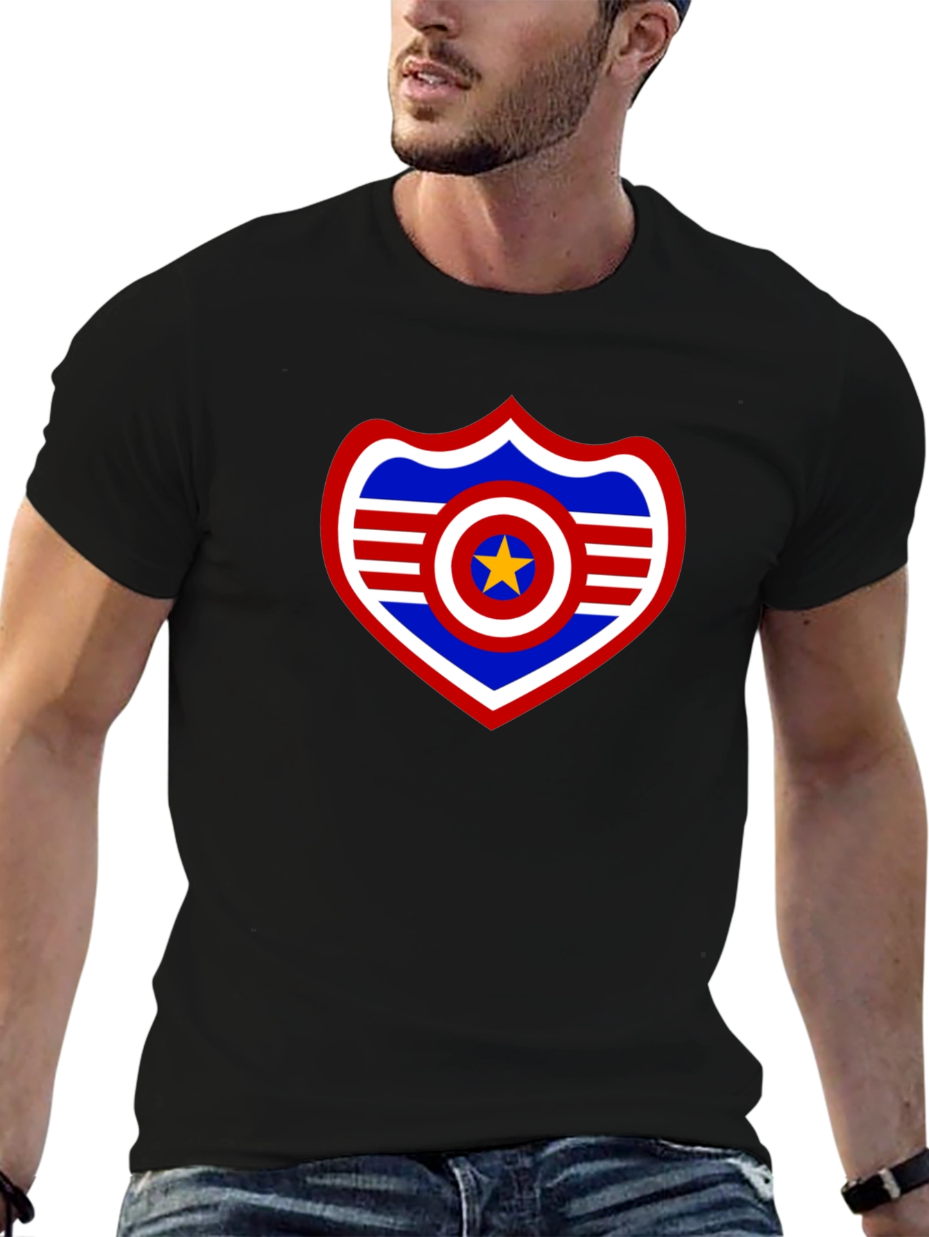 Show off your heroic side with this eye-catching Shield Hero T-Shirt! This black tee features a bold, stylized shield graphic emblazoned on the chest. The shield incorporates classic superhero colors: red, white, and blue, complete with a central gold star. Made from comfortable, breathable fabric, this shirt is perfect for everyday wear, comic conventions, or casual cosplay. Stand out from the crowd and make a statement with this unique and stylish tee. Ideal for fans of superheroes or anyone who loves a touch of bold design in their wardrobe.