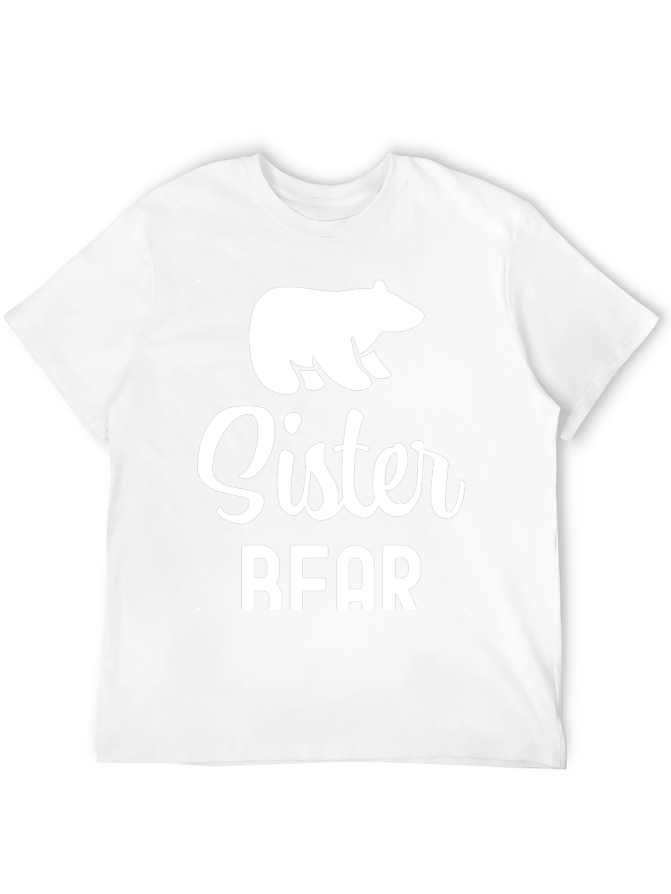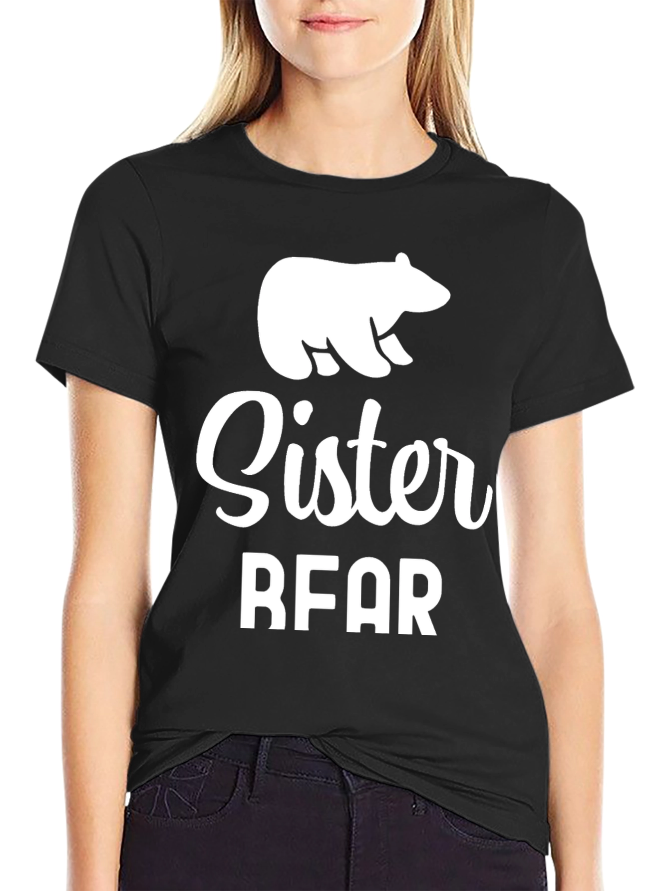 Show your love for your sister with this adorable "Sister Bear" t-shirt. Made from a comfortable, likely cotton blend, this black tee features a cute white bear graphic above the word "Sister" in a stylish cursive font. Below that, the word "BEAR" is printed in bold, uppercase letters, making it a fun and playful shirt. Perfect for family outings, casual wear, or as a thoughtful gift for your sister, this shirt is sure to bring smiles and create lasting memories. Get ready to embrace your inner "Sister Bear" with this must-have tee!