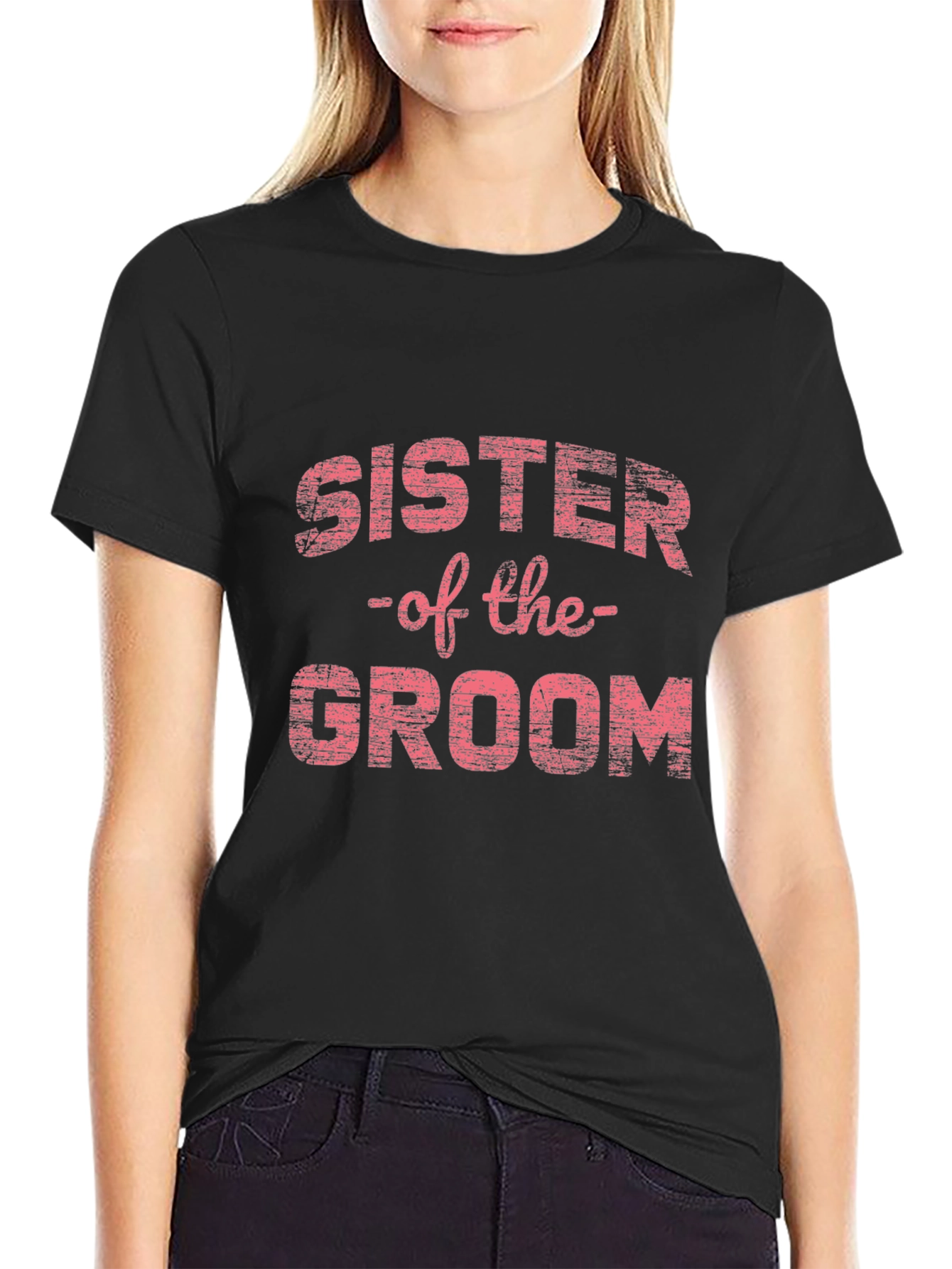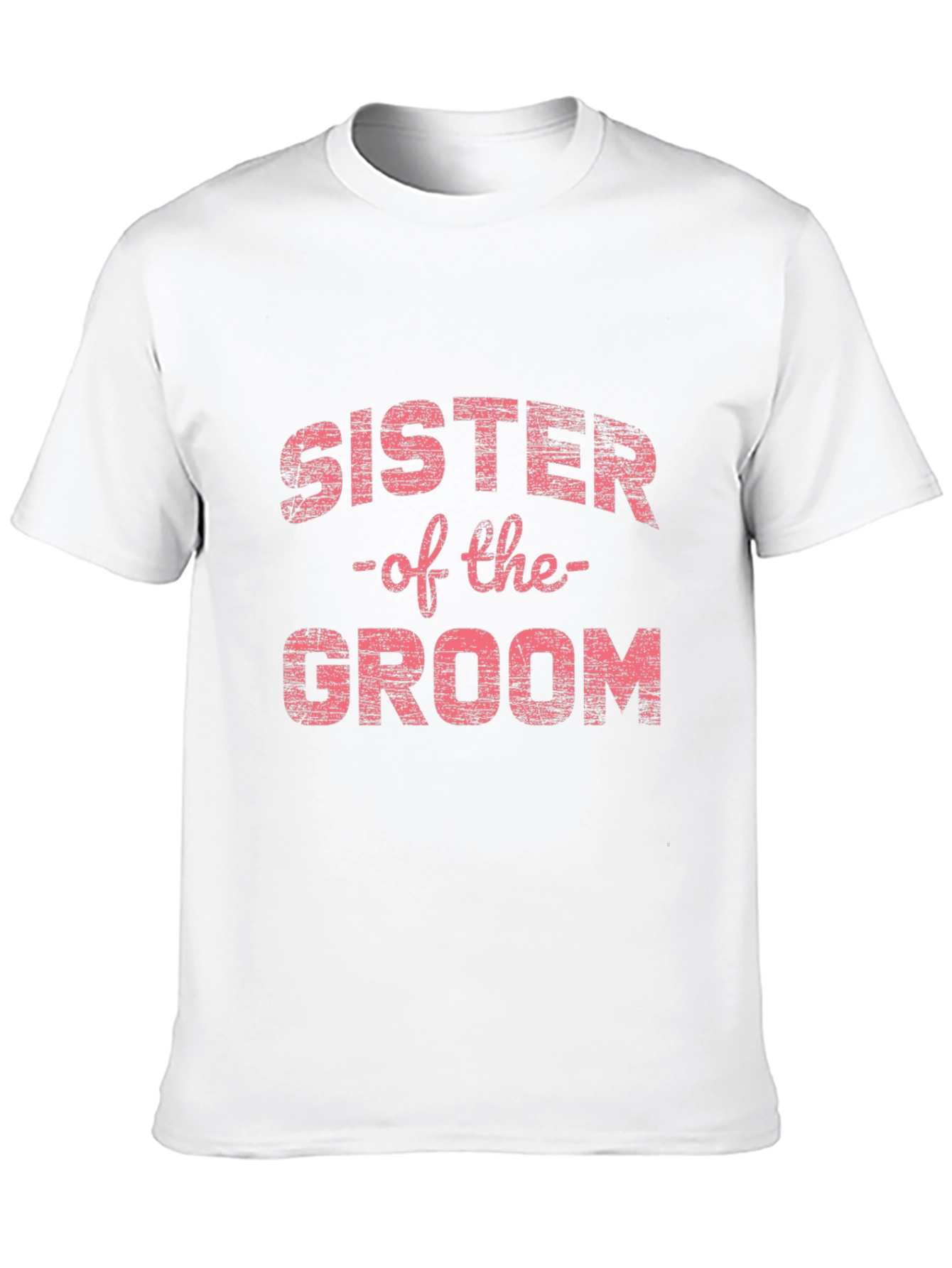 Celebrate the special day with this stylish 'Sister of the Groom' t-shirt. The shirt features a classic crew neck and a comfortable fit, making it ideal for all-day wear. The design showcases a bold, slightly distressed 'Sister of the Groom' text in a vibrant pink hue, perfect for standing out in wedding photos. Crafted from soft, breathable fabric, this tee ensures comfort while you celebrate. Whether you're helping with wedding preparations or dancing the night away, this shirt is a fun and fashionable way to show your support for the happy couple. A memorable keepsake for the wedding celebration.