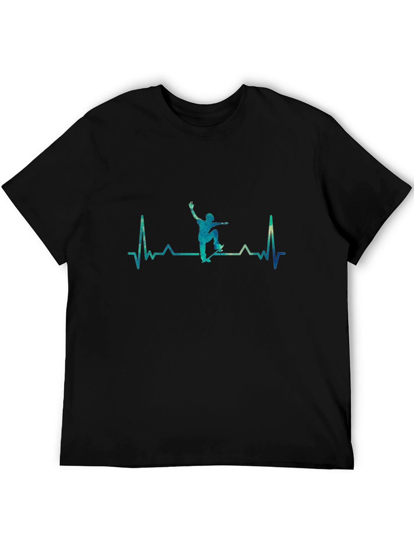 Skateboard Heartbeat Graphic Tee - Black Cotton Casual T-Shirt