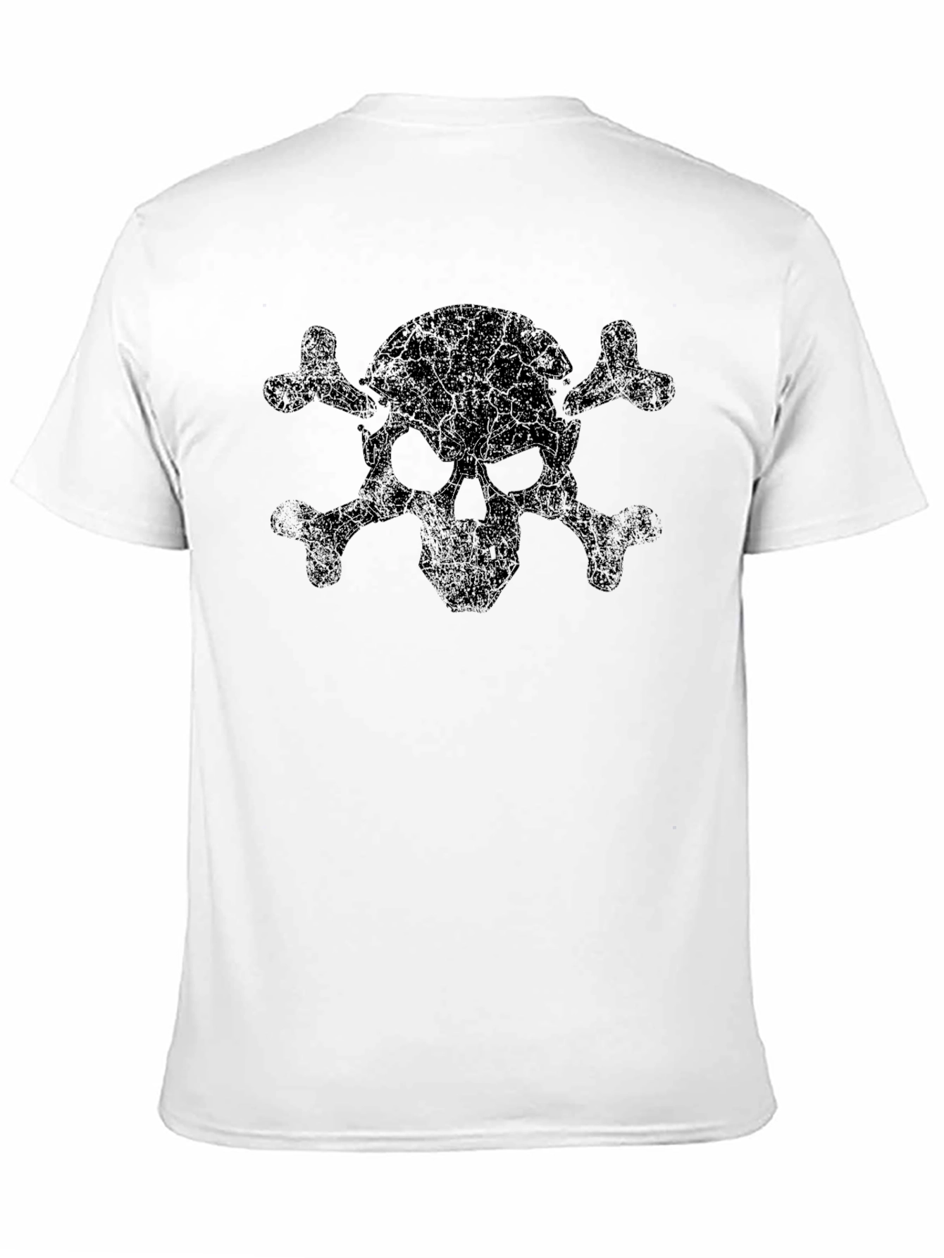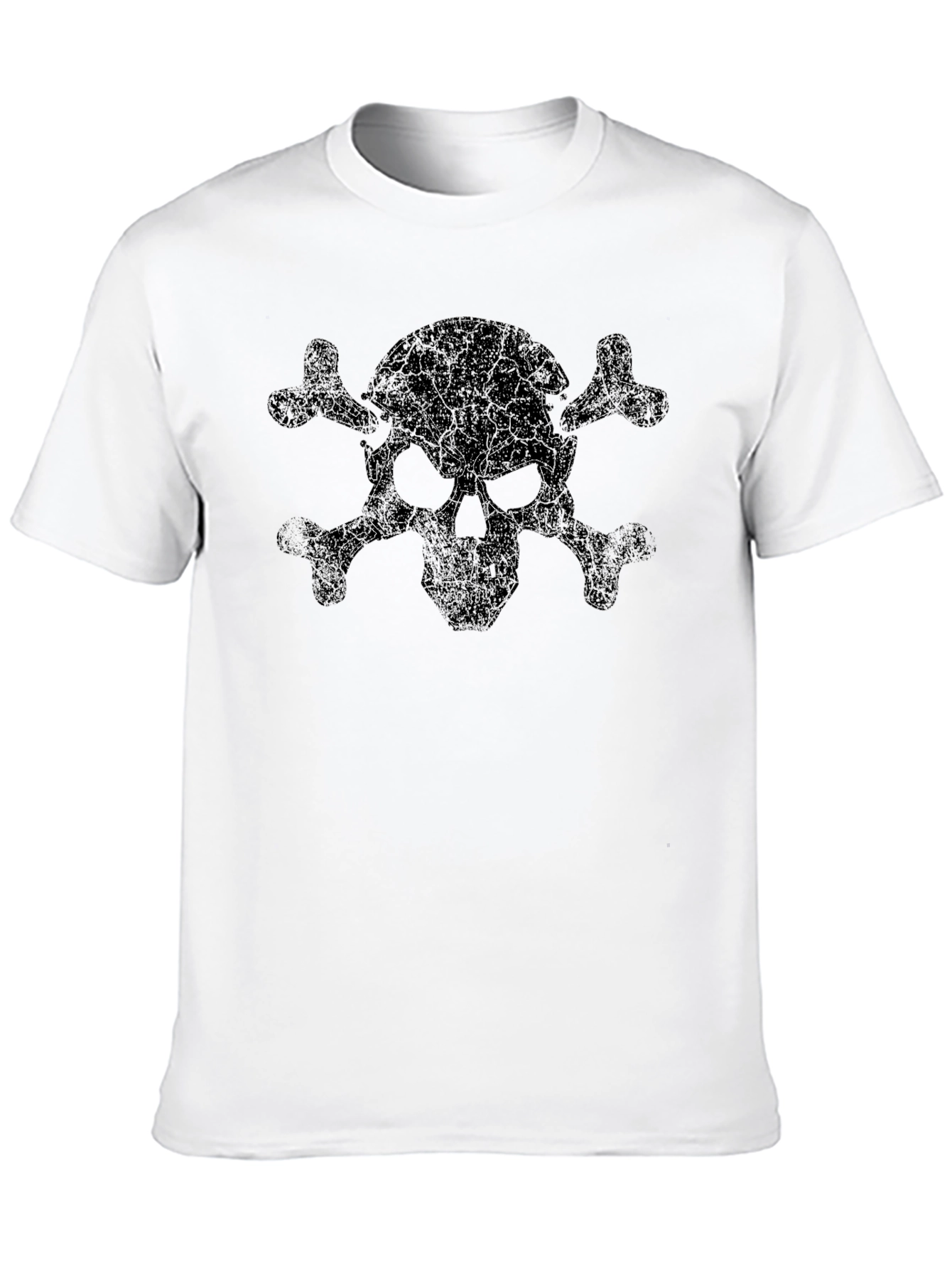 Showcase your edgy style with this striking black T-shirt featuring a distressed skull and crossbones graphic. The design is bold and eye-catching, making it a standout piece in any casual wardrobe. Crafted from what appears to be a soft and breathable cotton blend, this tee ensures both comfort and durability. Perfect for everyday wear, concerts, or casual hangouts, this versatile T-shirt is a must-have for those who appreciate alternative fashion. Pair it with jeans or shorts for an effortlessly cool and rebellious look. Own your style, embrace the darkness, and make a statement with this unique graphic tee.